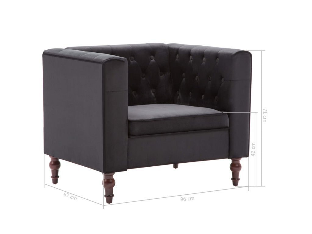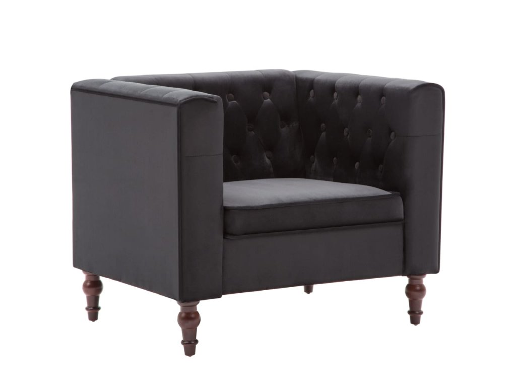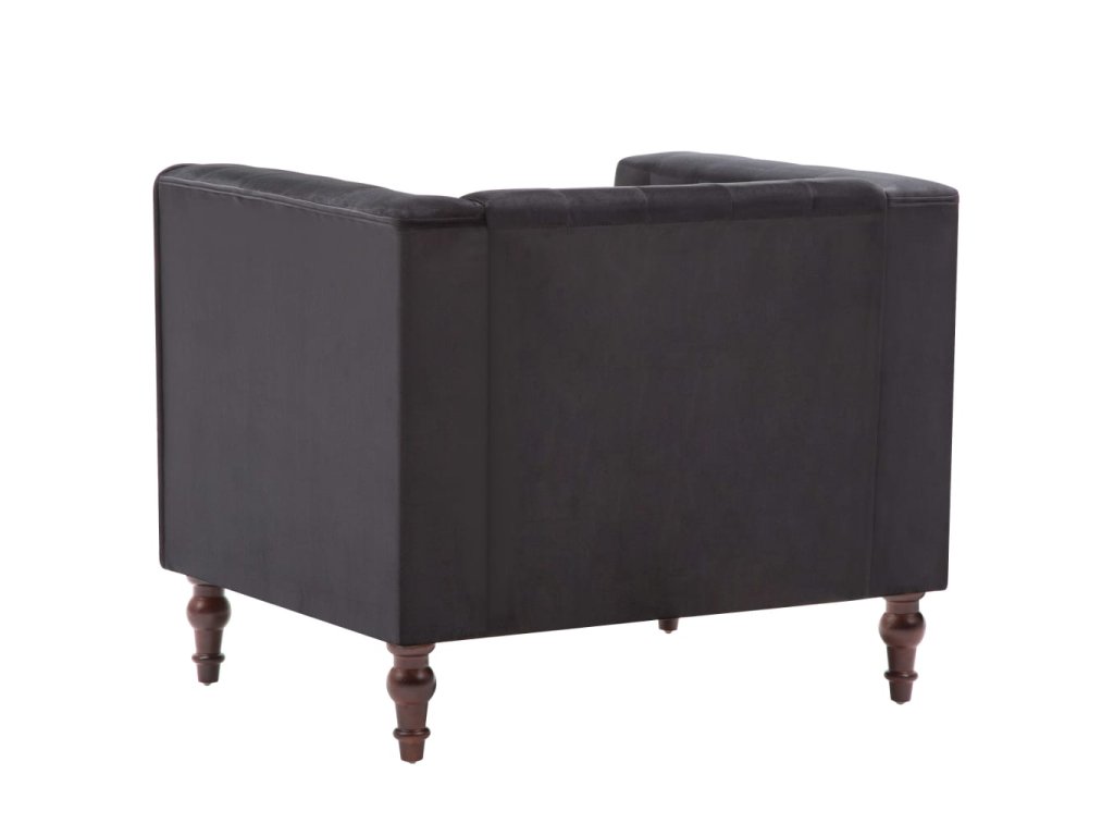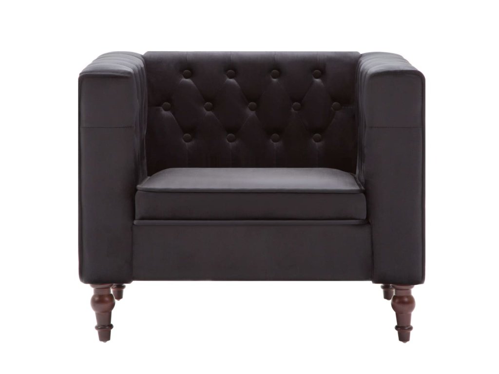 Kreslo je ozdobené dekoratívnymi gombíkmi a má extra široké opierky na ruky, a tak vnesie nádych luxusu, elegancie a sofistikovanosti do akéhokoľvek interiéru. Pevný rám z MDF a robustné nohy z dreveného masívu kreslu dodávaju stabilitu a trvácnosť. Kreslo je potiahnuté vysokokvalitnou zamatovou látkou a vyplnené hustým molitanom, a tak poskytuje optimálne pohodlie pri sedení. Poslúži ako ideálne miesto na sledovanie televízie alebo oddychovanie s knižkou v ruke!