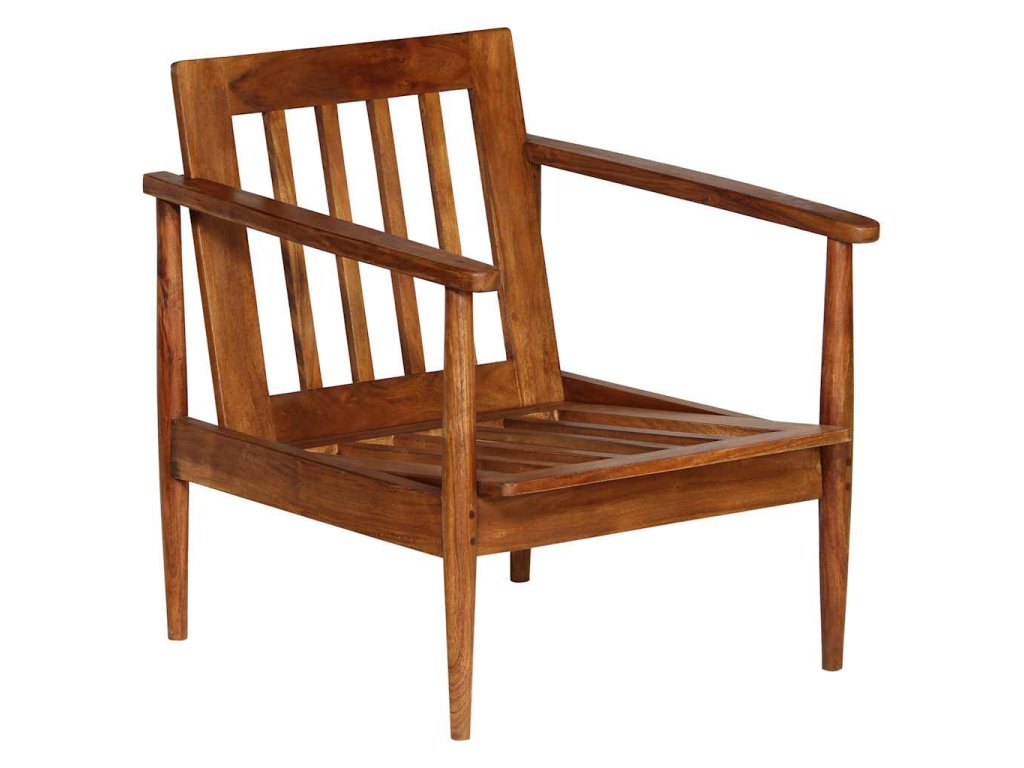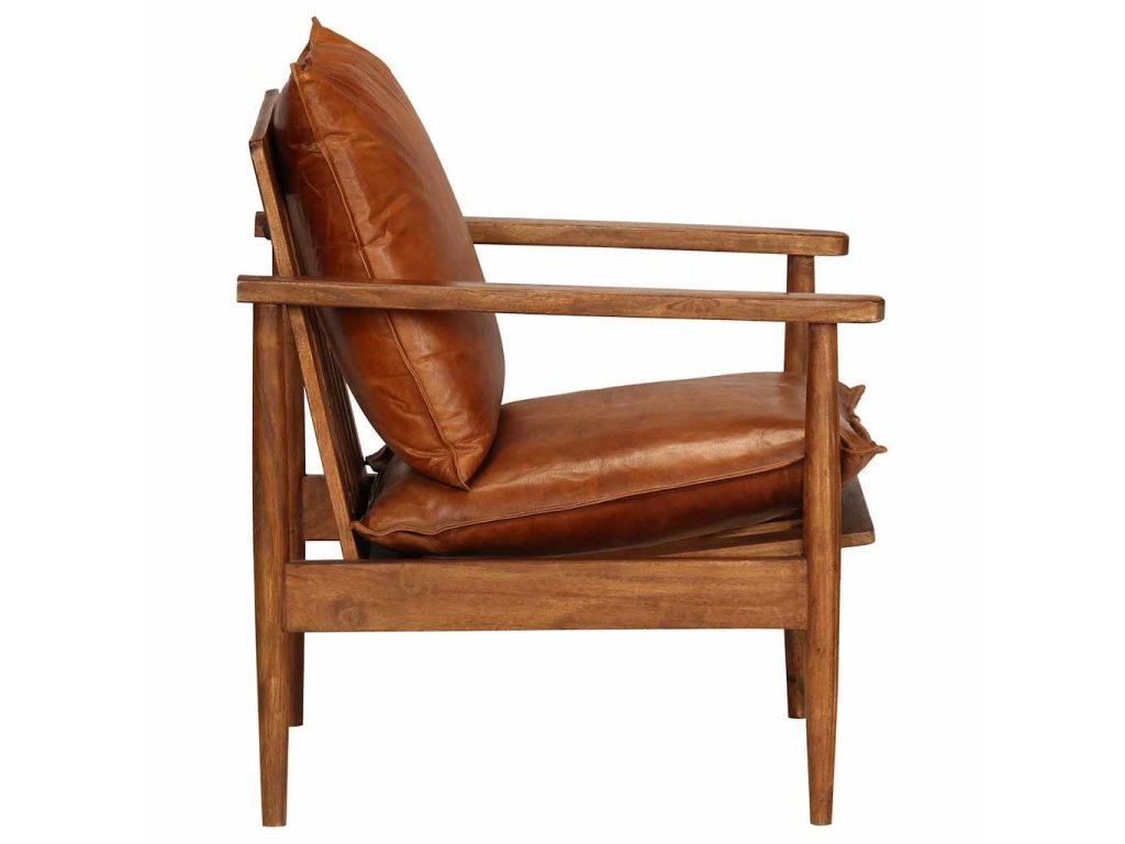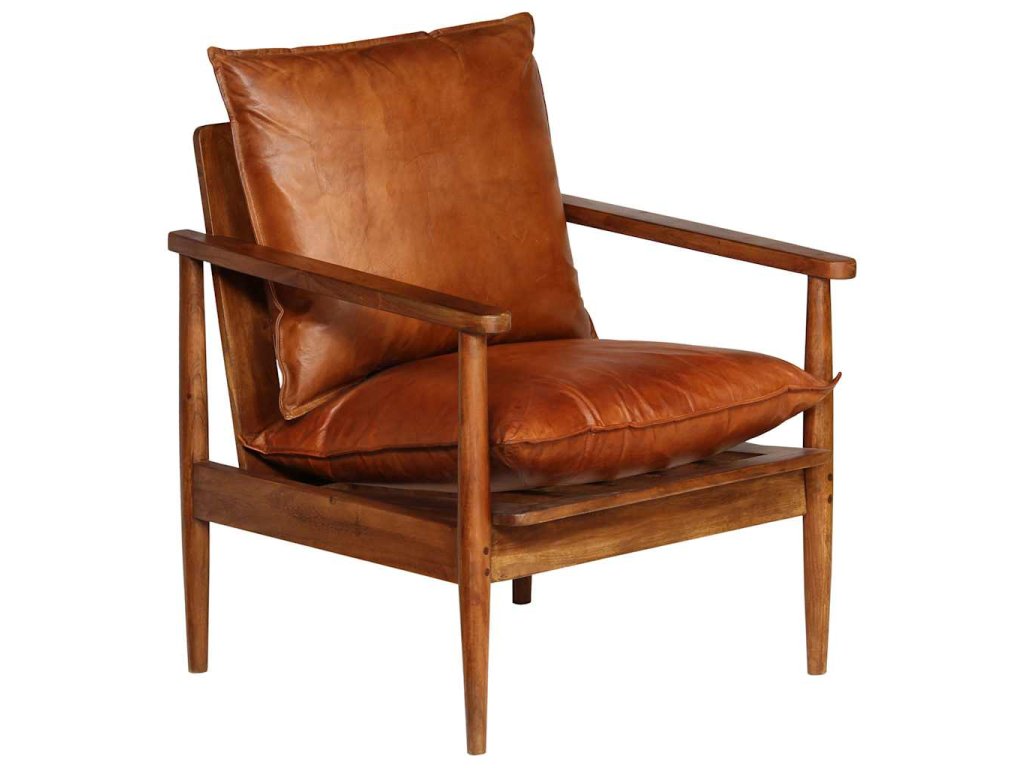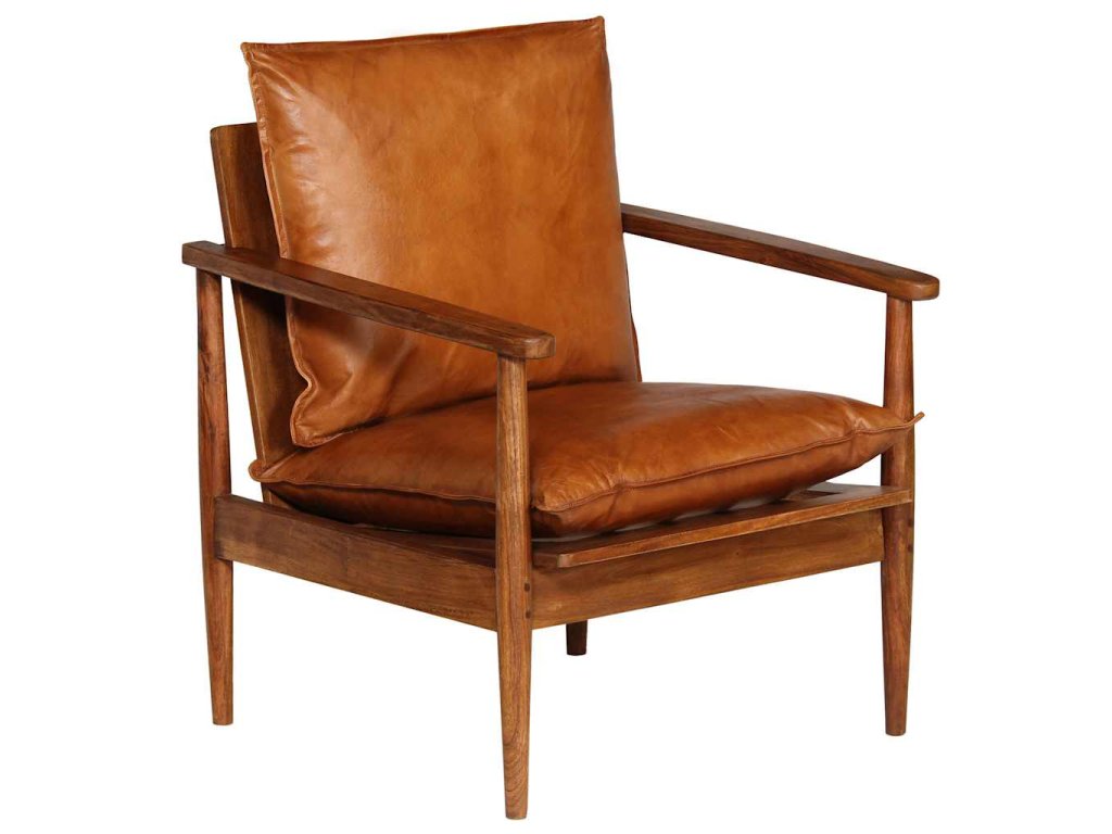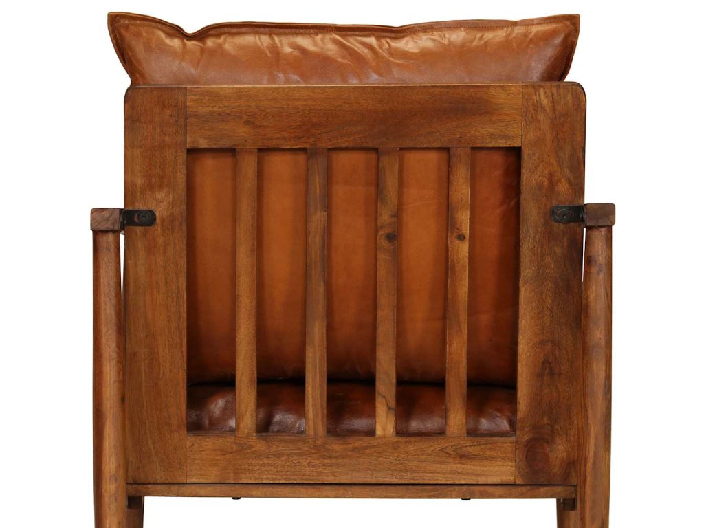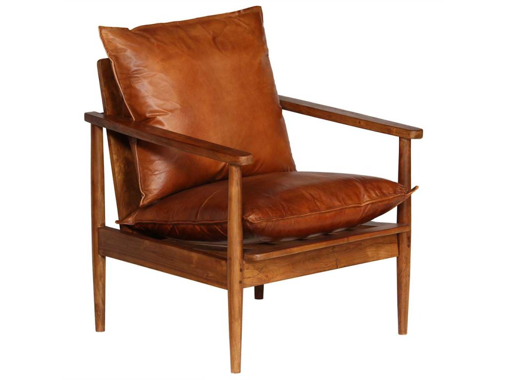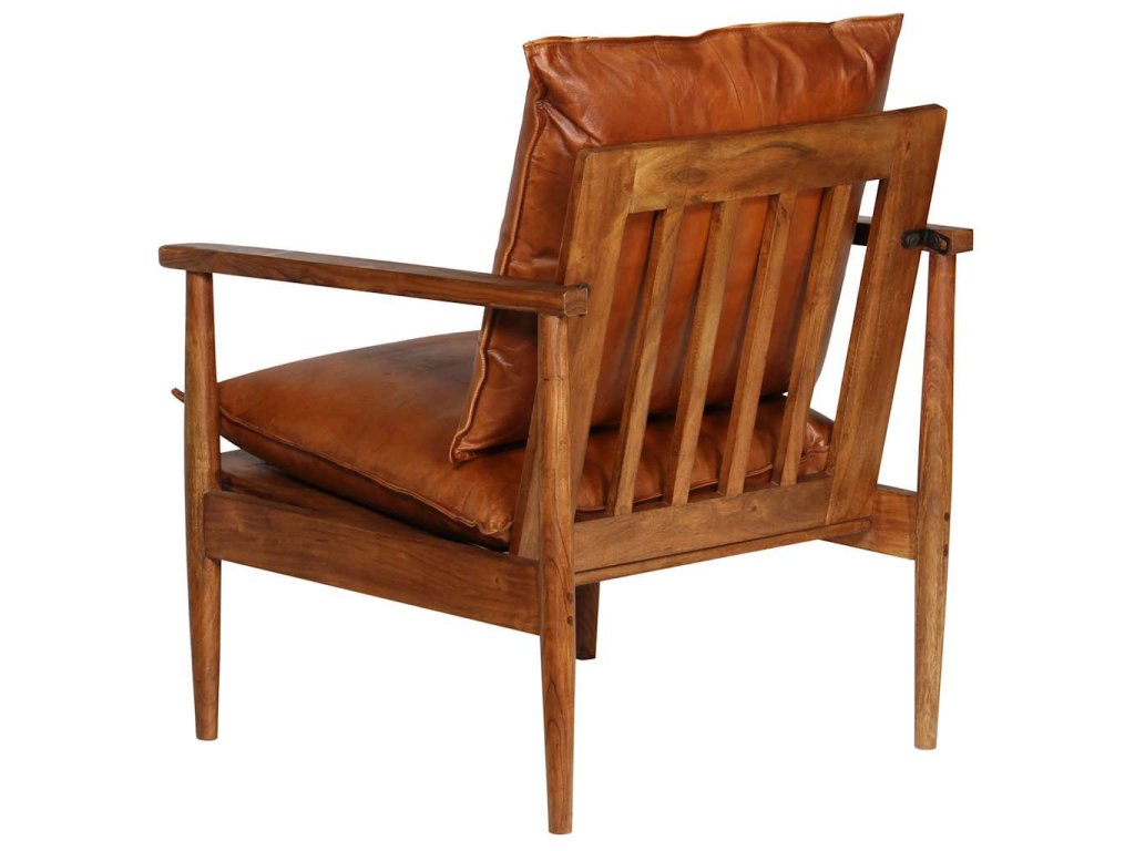 Kreslo je vyrobené z akáciového masívu, ktorý bol ošetrený brúsením, natieraním a lakovaním, vďaka čomu získal medovú povrchovú úpravu a rafinovaný vzhľad. Kreslo je kompletne ručne vyrobené a vďaka krásnej textúre dreva je každý kus nábytku jedinečný a trochu odlišný od ostatných. Toto kreslo je potiahnuté mäkkou kozou kožou a vyplnené hustým molitanom pre čo najväčší komfort pri sedení.