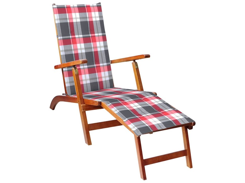 Lehátko je vyrobené z masívneho akáciového dreva, ktoré sa vyznačuje vynikajúcou odolnosťou voči poveternostným vplyvom a trvácnosťou. Záhradná stolička je preto vhodná na vnútorné aj vonkajšie použitie. Lehátko je možné nastaviť do 3 polôh. Ak sa nepoužíva, dá sa tiež zložiť. Toto lehátko je ergonomicky navrhnuté, ponúkne vám skvelú oporu a bude dokonalým spoločníkom pre slnečné popoludnia. A čo viac, pribalený vankúš zaručí ešte viac pohodlia pri leňošení. Každý vankúš má elastický pás a dve sady šnúrok, pomocou ktorých ho pevne pripevníte k lehátku.