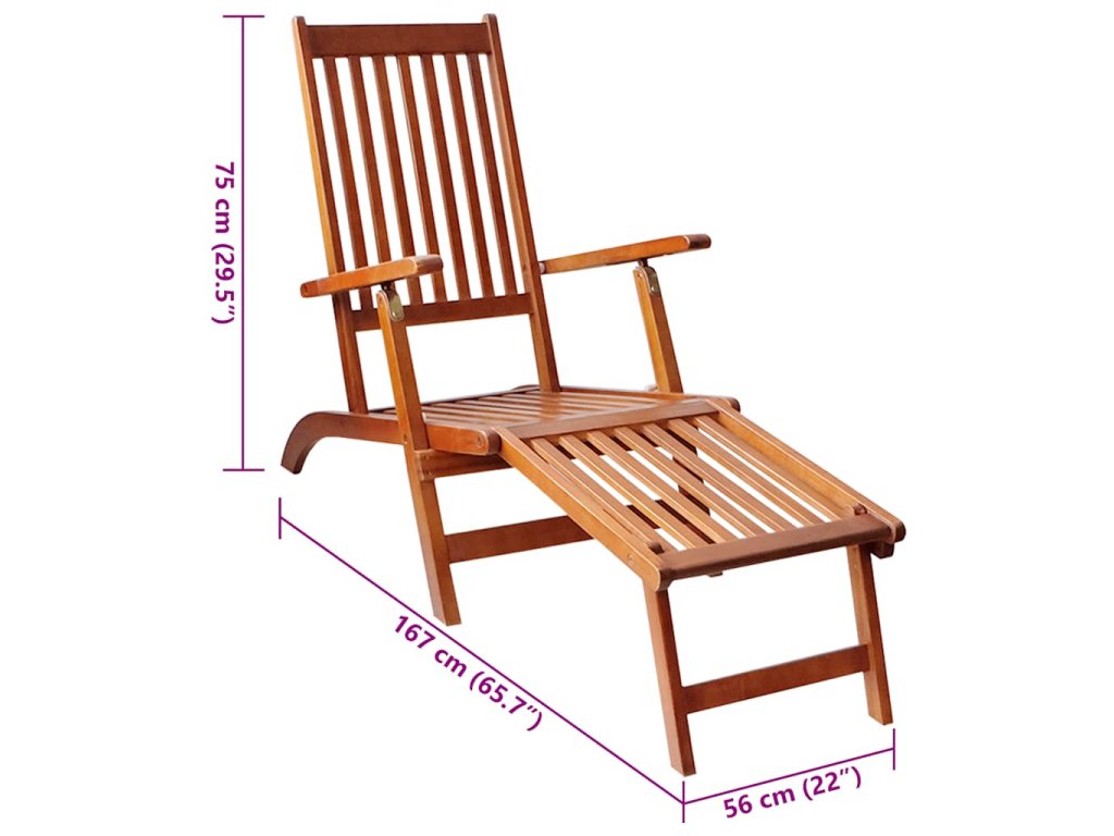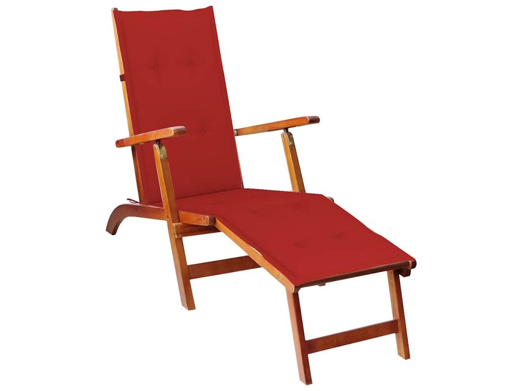 Lehátko je vyrobené z masívneho akáciového dreva, ktoré sa vyznačuje vynikajúcou odolnosťou voči poveternostným vplyvom a trvácnosťou. Záhradná stolička je preto vhodná na vnútorné aj vonkajšie použitie. Lehátko je možné nastaviť do 3 polôh. Ak sa nepoužíva, dá sa tiež zložiť. Toto lehátko je ergonomicky navrhnuté, ponúkne vám skvelú oporu a bude dokonalým spoločníkom pre slnečné popoludnia. A čo viac, pribalený vankúš zaručí ešte viac pohodlia pri leňošení. Každý vankúš má elastický pás a dve sady šnúrok, pomocou ktorých ho pevne pripevníte k lehátku.