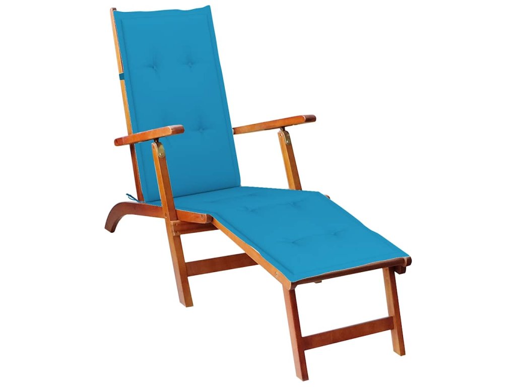 Lehátko je vyrobené z masívneho akáciového dreva, ktoré sa vyznačuje vynikajúcou odolnosťou voči poveternostným vplyvom a trvácnosťou. Záhradná stolička je preto vhodná na vnútorné aj vonkajšie použitie. Lehátko je možné nastaviť do 3 polôh. Ak sa nepoužíva, dá sa tiež zložiť. Toto lehátko je ergonomicky navrhnuté, ponúkne vám skvelú oporu a bude dokonalým spoločníkom pre slnečné popoludnia. A čo viac, pribalený vankúš zaručí ešte viac pohodlia pri leňošení. Každý vankúš má elastický pás a dve sady šnúrok, pomocou ktorých ho pevne pripevníte k lehátku.