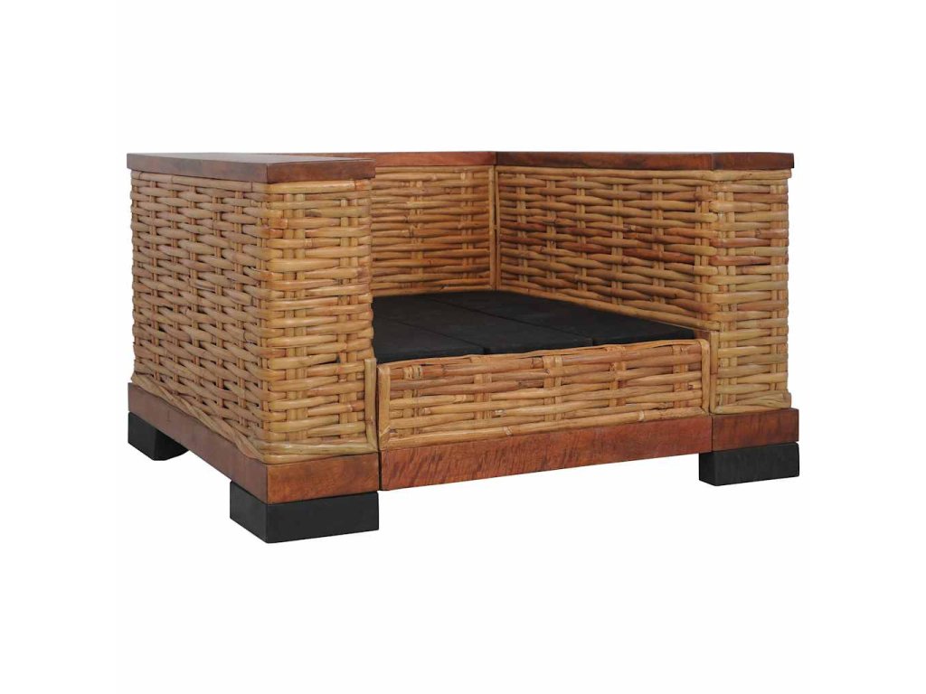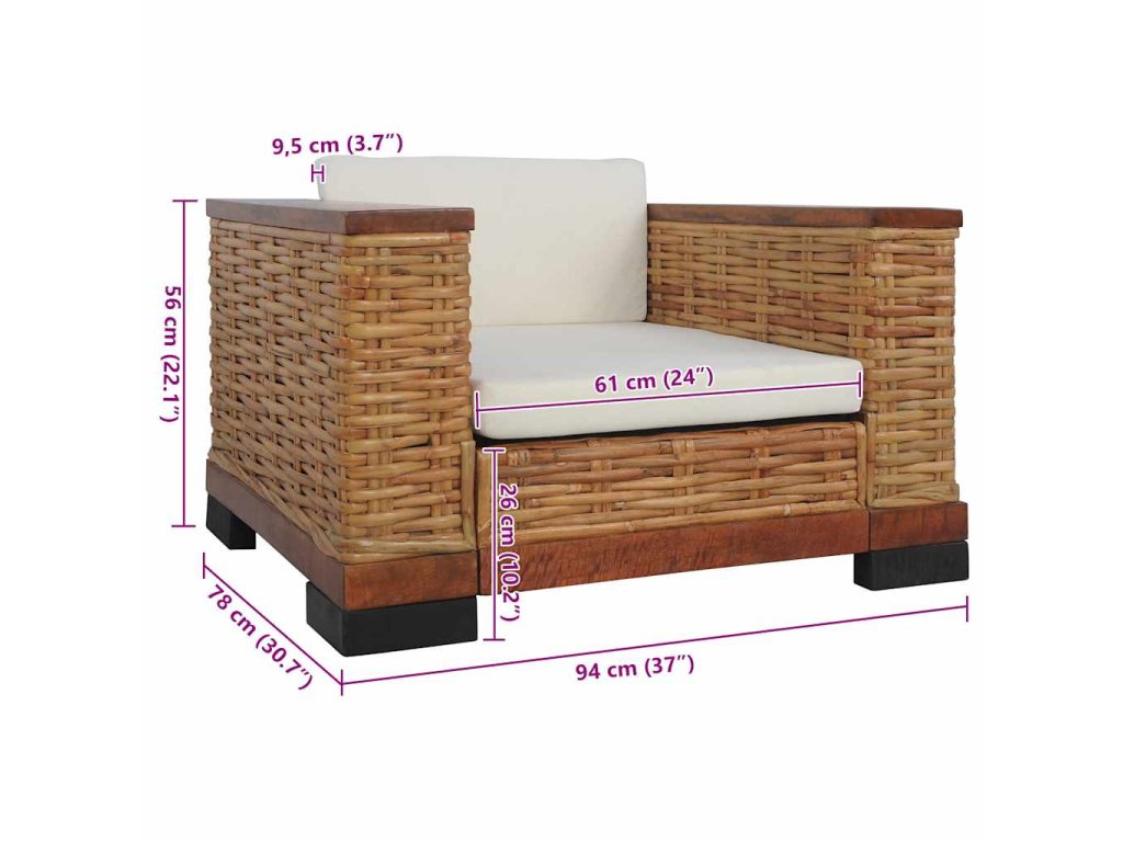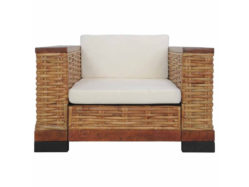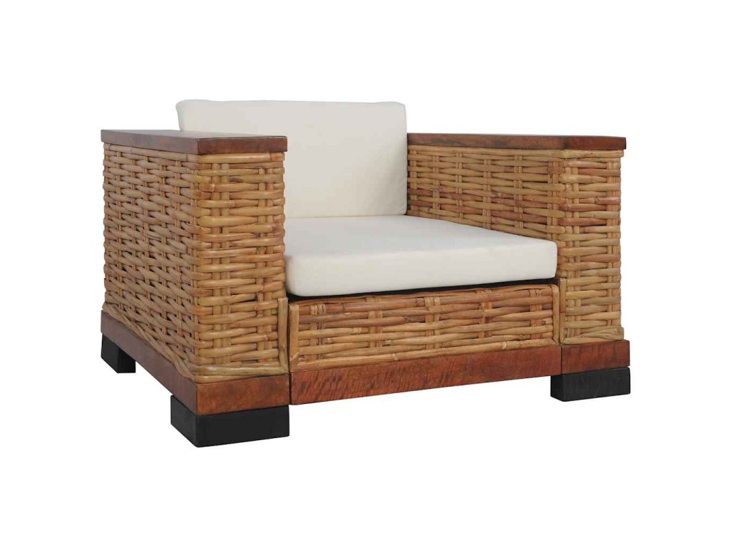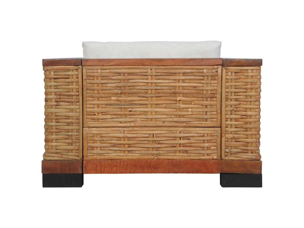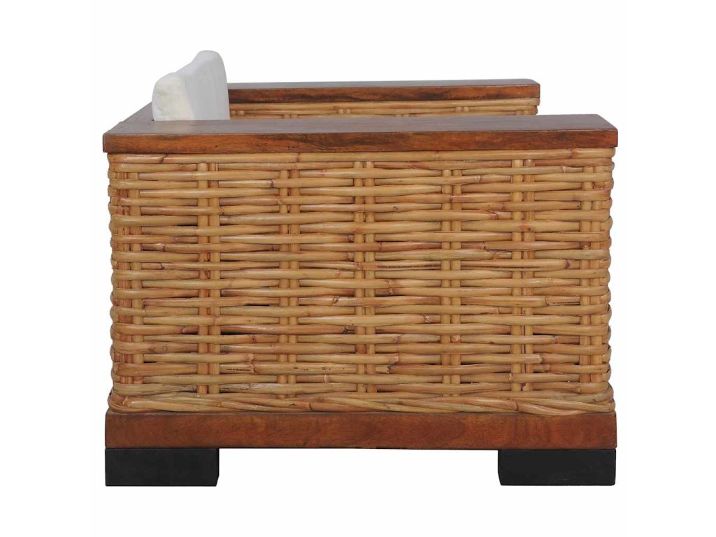 Vďaka kvalitnému pravému ratanu sa kreslo jednoducho čistí, je odolné a vhodné na každodenné použitie. Má pevný drevený rám, ktorý je skutočne odolný a stabilný. Hrubé podsedáky a vankúše sú pohodlné a vďaka odnímateľným návliečkam sú aj umývateľné. Široké opierky zaistia, že sa na pohovke pohodlne sedí.