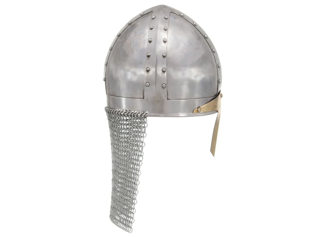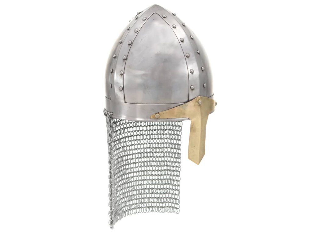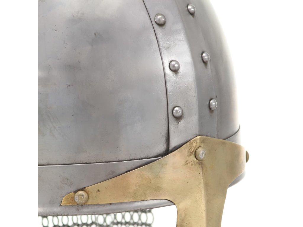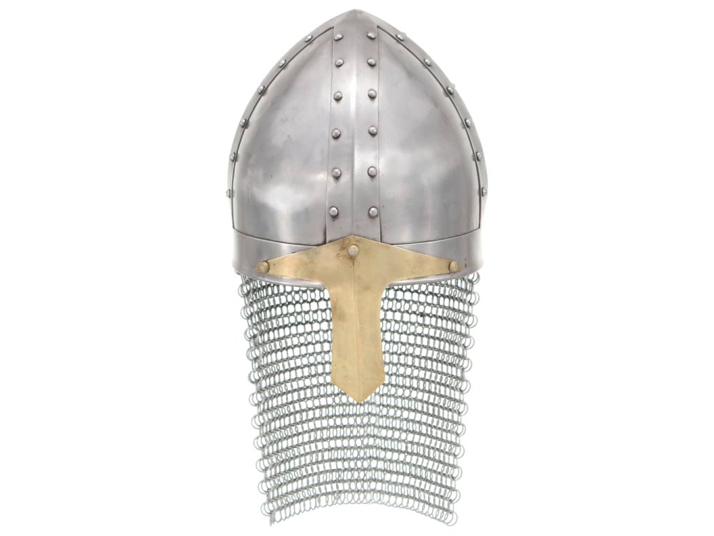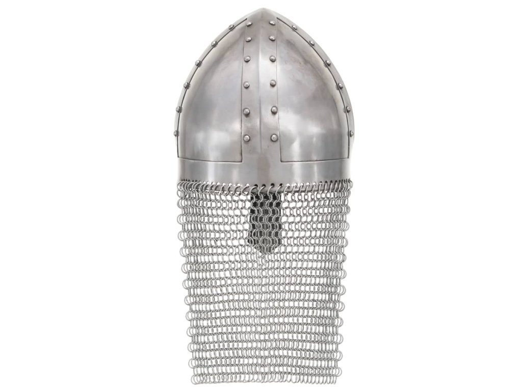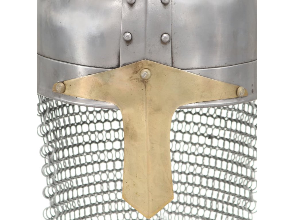 Pancierová prilba je presnou replikou pôvodnej križiackej prilby. Bola vyrobená z ocele s 18 gauge a kombinuje starožitný štýl a odolný materiál. Vzniká tak pútavá prilba, ktorá dokonale ladí s vašim rytierskym outfitom. Táto nositeľná prilba, nazývaná aj Kalotten prilba, má malé otvory pre viditeľnosť a vetranie, ktoré poskytujú skvelú ochranu. Okrem toho sa jedná aj o pútavý výstavný kúsok.