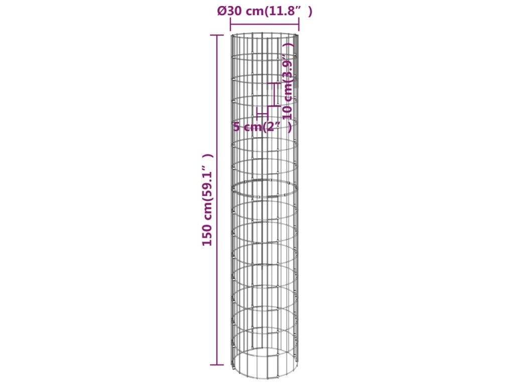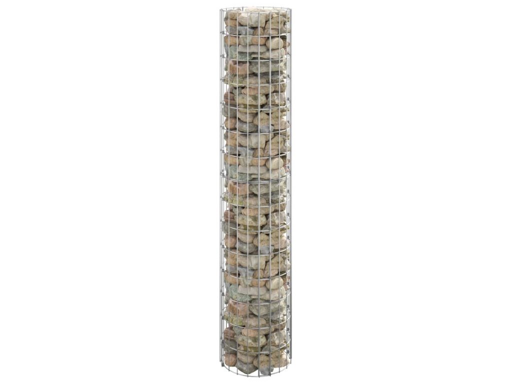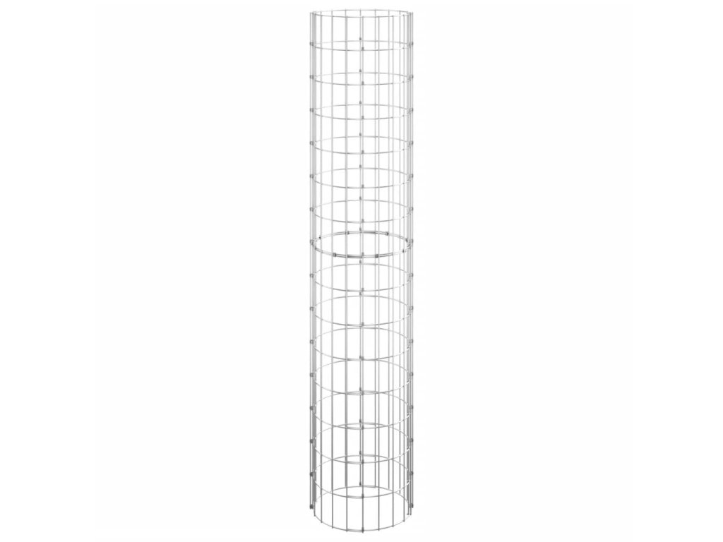 Tento okrúhly gabiónový stĺpik predstavuje praktický spôsob, ako vytvoriť pevnú obrubu pre rastliny v záhrade či vo dvore.
