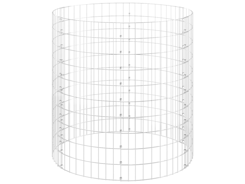 Tento okrúhly gabiónový stĺpik predstavuje praktický spôsob, ako vytvoriť pevnú obrubu pre rastliny v záhrade či vo dvore.