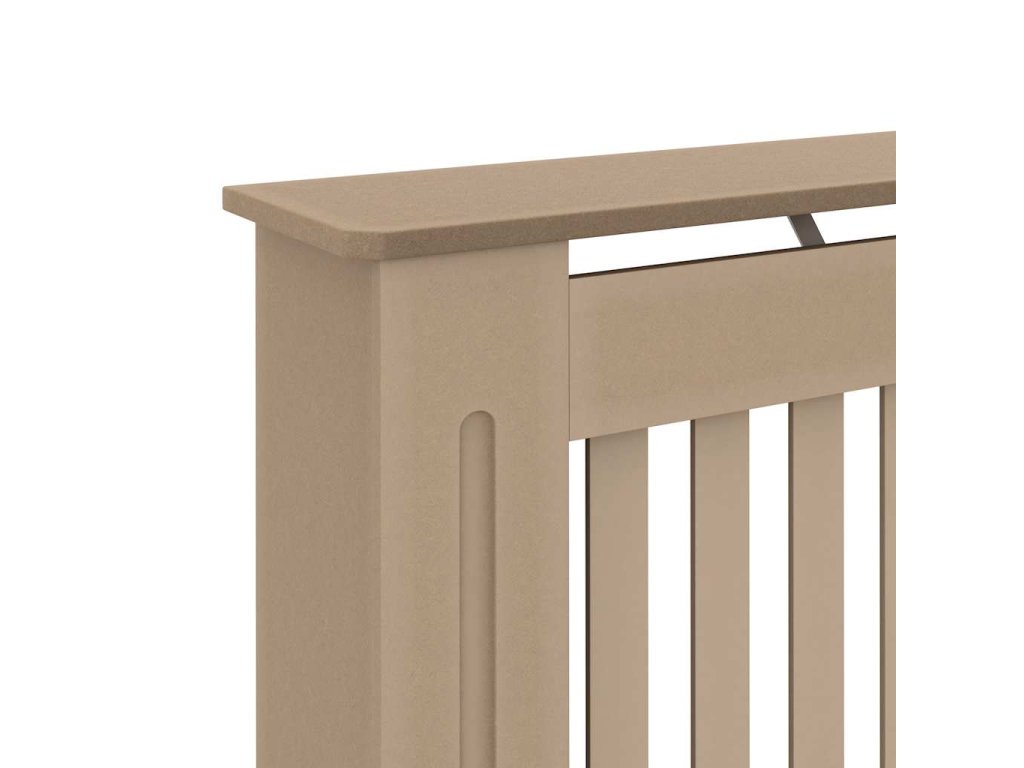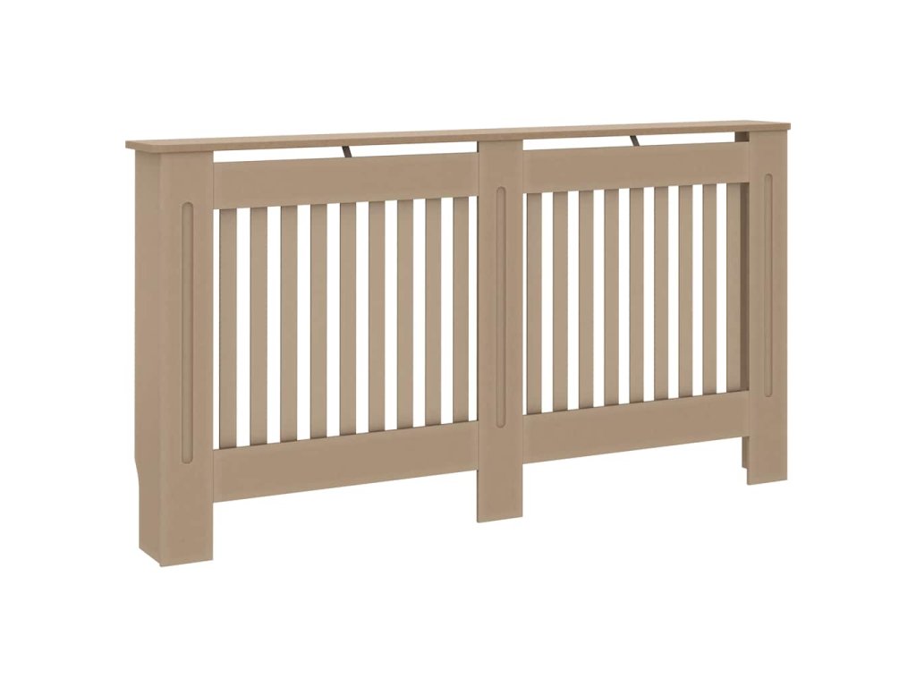 Pevná a trvácna skrinka na radiátor je vyrobená z MDF. Kryt na radiátor má moderný latkový dizajn, ktorý sa bude hodiť do každého interiéru.