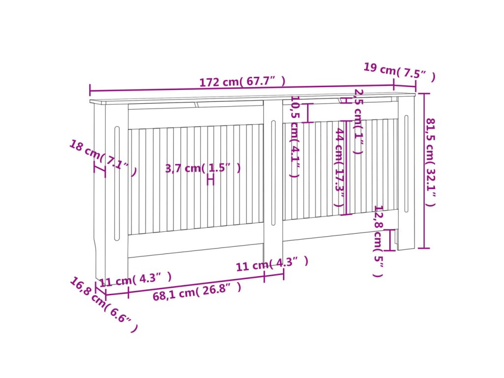 Bol navrhnutý tak, aby ozdobným spôsobom zakryl radiátor a vytvoril dodatočný priestor na uloženie kníh, rámov fotografií, dekorácií, atď. Je vyrobený z vysokokvalitného MDF, a preto je pevný a odolný. Kryt má moderný, roštový dizajn, ktorý sa hodí do každého interiéru a dá sa veľmi jednoducho namontovať na radiátor.