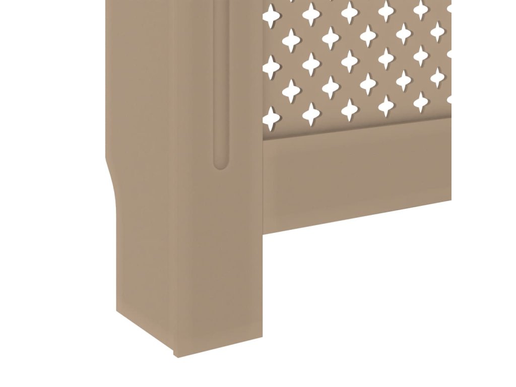 Táto skrinka na zakrytie radiátora vyrobená z MDF je pevná a odolná. Vyznačuje sa moderným lamelovým dizajnom, vďaka čomu je vhodná pre akýkoľvek interiér. Polica poskytuje dostatok priestoru na umiestnenie kníh, zarámovaných fotografií, ozdôb atď.
