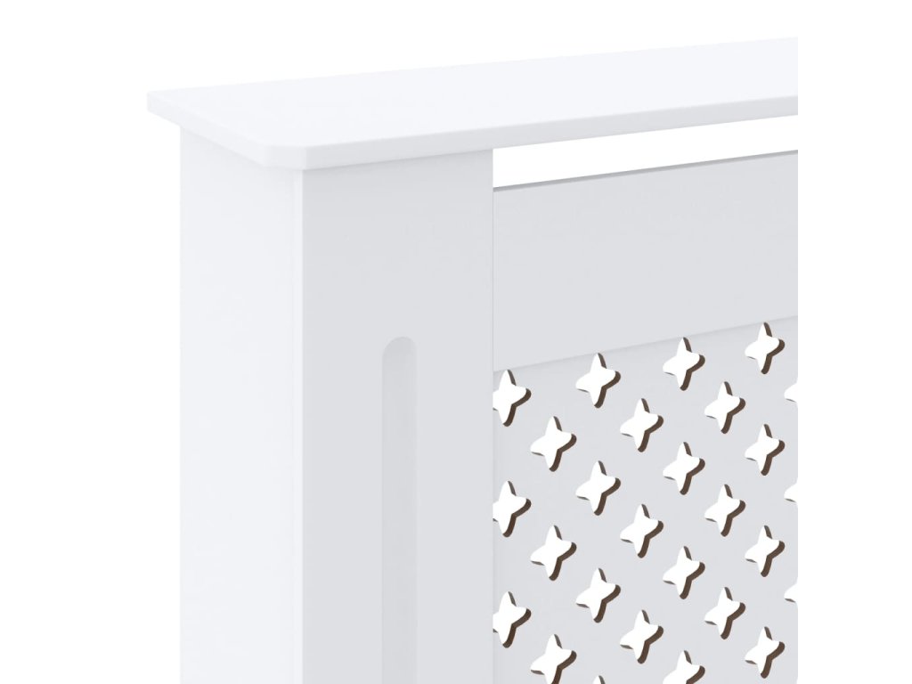 Táto skrinka na zakrytie radiátora vyrobená z MDF je pevná a odolná. Vyznačuje sa moderným lamelovým dizajnom, vďaka čomu je vhodná pre akýkoľvek interiér. Polica poskytuje dostatok priestoru na umiestnenie kníh, zarámovaných fotografií, ozdôb atď.