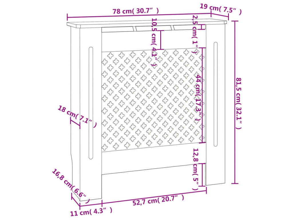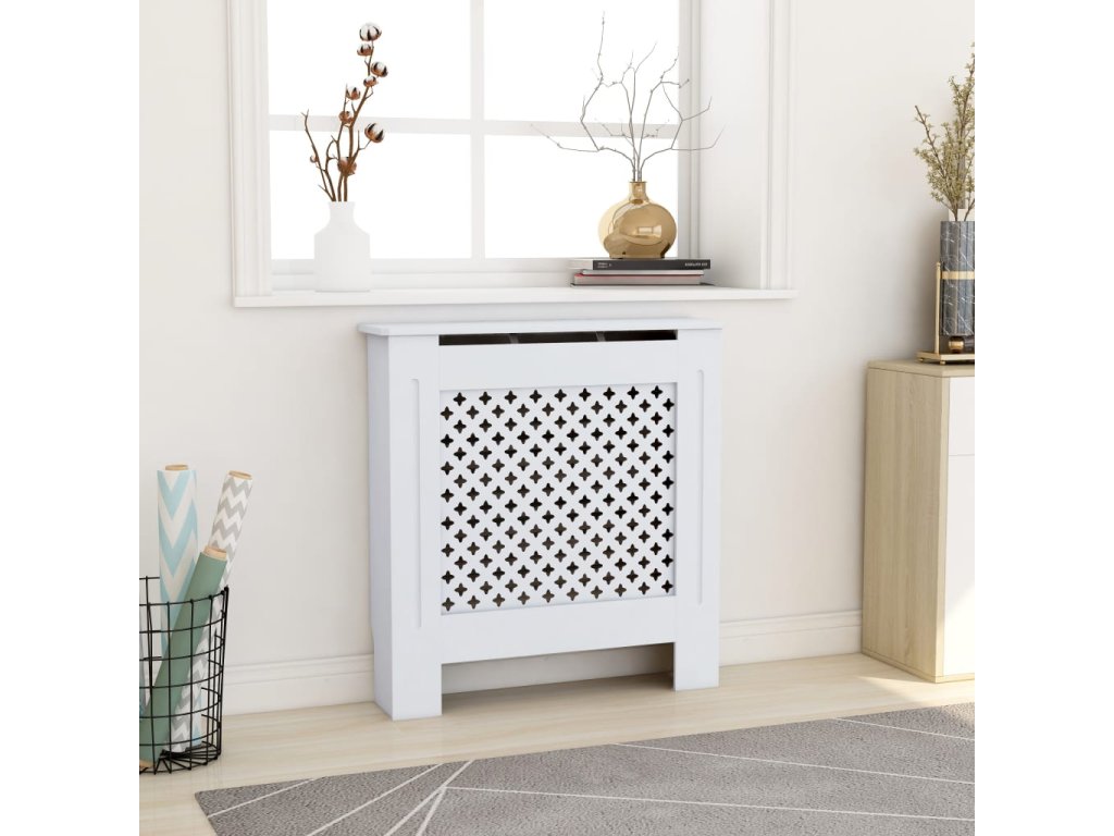 Táto skrinka na zakrytie radiátora vyrobená z MDF je pevná a odolná. Vyznačuje sa moderným lamelovým dizajnom, vďaka čomu je vhodná pre akýkoľvek interiér. Polica poskytuje dostatok priestoru na umiestnenie kníh, zarámovaných fotografií, ozdôb atď.