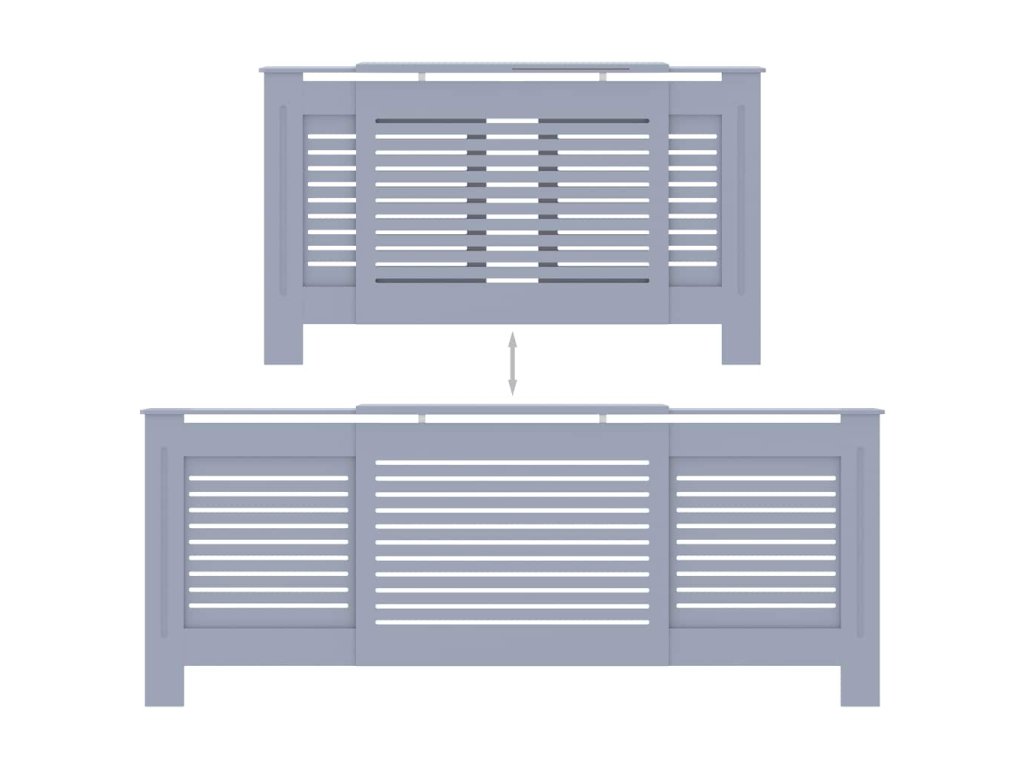 Táto skrinka na zakrytie radiátora vyrobená z MDF je pevná a odolná. Vyznačuje sa moderným lamelovým dizajnom, vďaka čomu je vhodná pre akýkoľvek interiér. Polica poskytuje dostatok priestoru na umiestnenie kníh, zarámovaných fotografií, ozdôb atď.