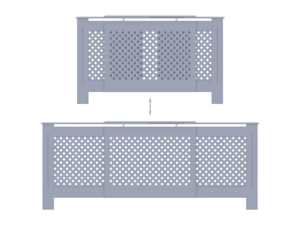 Táto skrinka na zakrytie radiátora vyrobená z MDF je pevná a odolná. Vyznačuje sa moderným lamelovým dizajnom, vďaka čomu je vhodná pre akýkoľvek interiér. Polica poskytuje dostatok priestoru na umiestnenie kníh, zarámovaných fotografií, ozdôb atď.