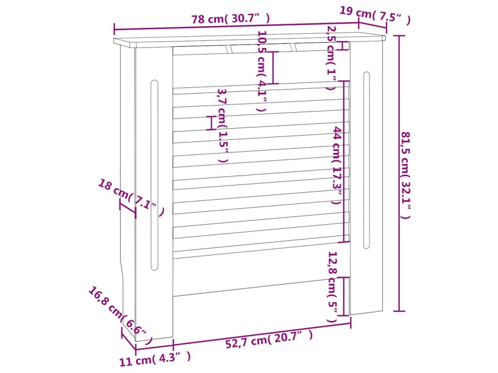 Táto skrinka na zakrytie radiátora vyrobená z MDF je pevná a odolná. Vyznačuje sa moderným lamelovým dizajnom, vďaka čomu je vhodná pre akýkoľvek interiér. Polica poskytuje dostatok priestoru na umiestnenie kníh, zarámovaných fotografií, ozdôb atď.