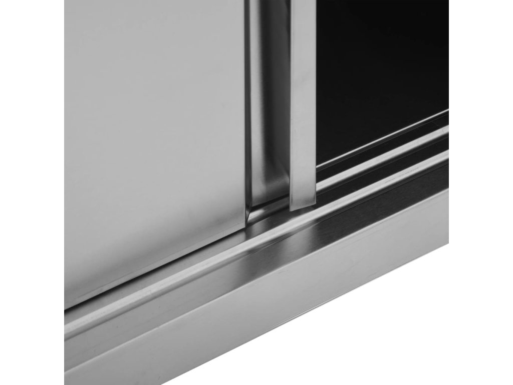 Kuchynská skrinka vyrobená z nehrdzavejúcej ocele je mimoriadne trvácna, stabilná a ľahko sa čistí, vďaka čomu je ideálna pre použitie tam, kde sa vyžadujú vysoké hygienické štandardy. Vďaka priestrannému úložnému priestoru bude vaša kuchyňa usporiadanejšia a čistejšia. Dizajn posuvných dverí navyše zaručuje pohodlný prístup ku všetkým veciam vo vnútri. Montáž kuchynskej nástennej skrinky je jednoduchá.