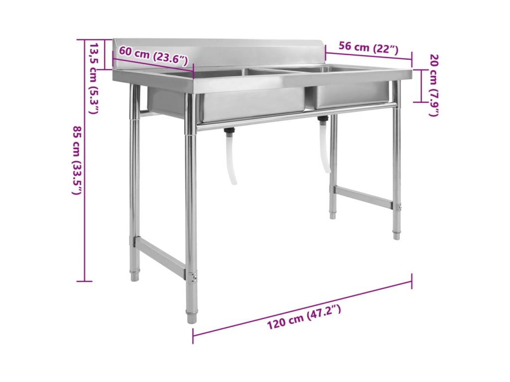 Kuchynský drez je vyrobený z prvotriednej nehrdzavejúcej ocele a je odolný voči poškriabaniu a nárazom, je veľmi pevný a vhodný pre kontakt s potravinami. Taktiež odpudzuje špinu a je odolný voči škvrnám, takže sa ľahko čistí. Extra hlboké dvojité umývadlá majú dostatok priestoru na umývanie veľkých nádob a riadu. Vďaka tomu, že je prístenný, môže zabrániť rozstrekovaniu vody. Navyše sa jednoducho zostavuje a presúva.