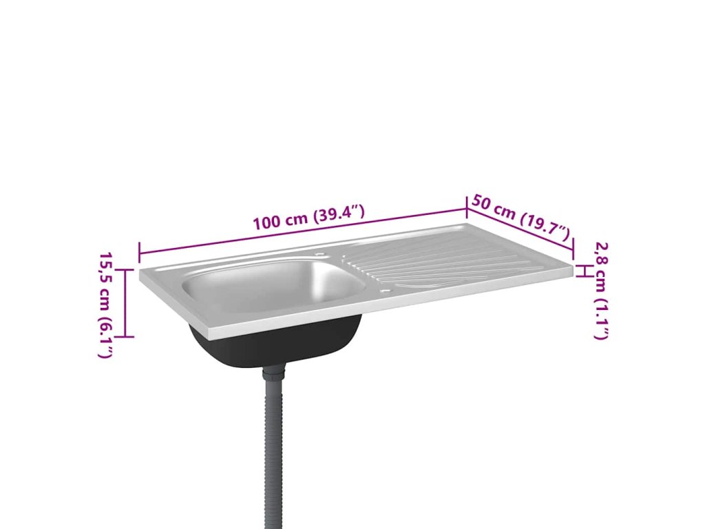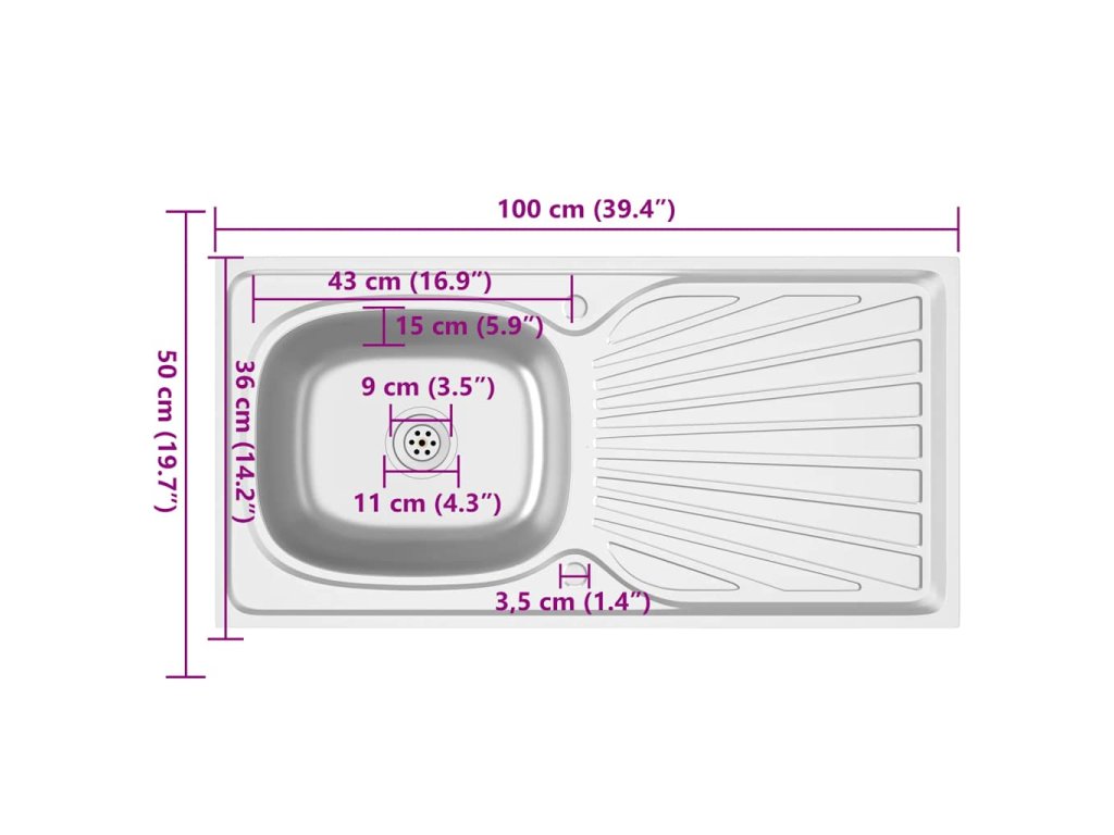 Drez je vyrobený zo SUS (nehrdzavejúca oceľ), vďaka čomu je odolný voči teplu, poškriabaniu, nárazu a tiež sa ľahko čistí. Toto umývadlo má mimoriadne hrubé bočné strany, ktoré sa dajú položiť na vrch skrinky. Bočný odkvapkávač vám poskytne ďalší priestor pre vaše riady. Obsahuje také odtokové potrubie, aby sa dalo otočiť na 2 strany vďaka otvorom na kohútik na oboch stranách. Pretože je tento drez úplne reverzibilný, je možné ho namontovať s vaničkou umývadla vľavo alebo vpravo.