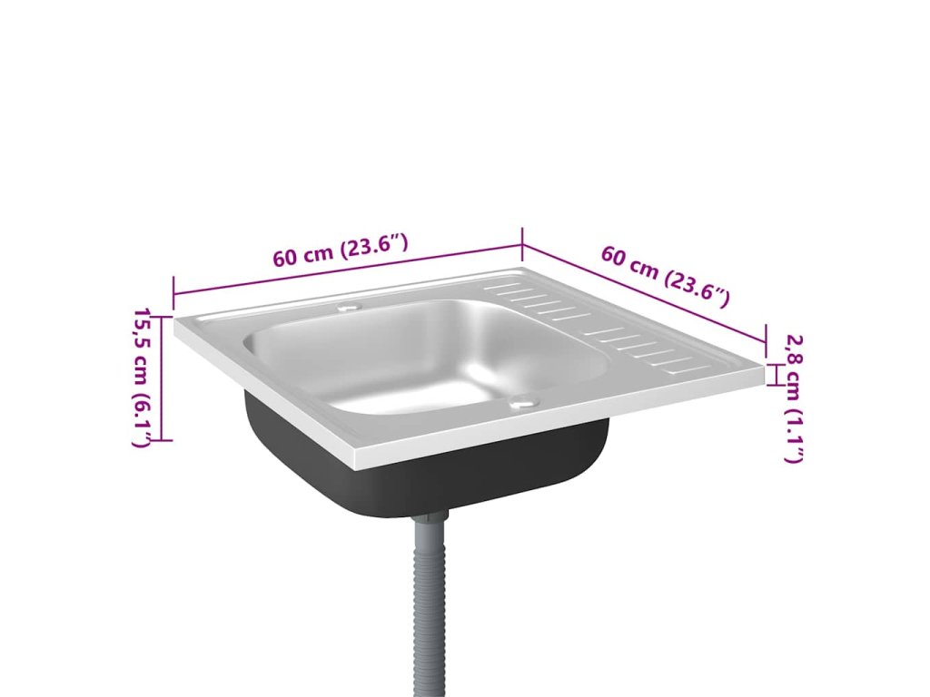 Drez je vyrobený zo SUS (nehrdzavejúca oceľ), vďaka čomu je odolný voči teplu, poškriabaniu, nárazu a tiež sa ľahko čistí. Toto umývadlo má mimoriadne hrubé bočné strany, ktoré sa dajú položiť na vrch skrinky. Bočný odkvapkávač vám poskytne ďalší priestor pre vaše riady. Obsahuje také odtokové potrubie, aby sa dalo otočiť na 2 strany vďaka otvorom na kohútik na oboch stranách. Pretože je tento drez úplne reverzibilný, je možné ho namontovať s vaničkou umývadla vľavo alebo vpravo.