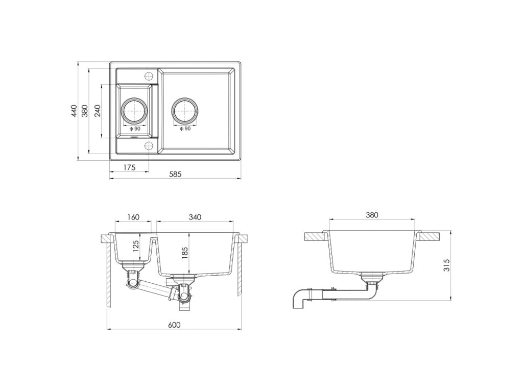 - Priemer odtokového otvoru: 90 mm