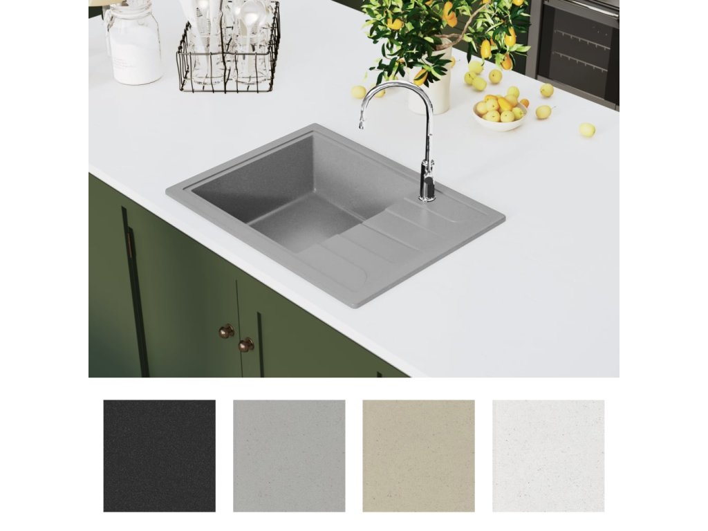 Drez je vyrobený z granitu, vďaka čomu je odolný voči teplu, poškriabaniu, nárazom a ľahko sa čistí. Bočný odkvapkávač vám poskytne ďalší priestor pre váš riad. Pretože je drez úplne reverzibilný, dá sa namontovať buď naľavo alebo napravo od vaničky. V balení je aj sitko pre ľahké odstránenie nečistôt. Otvor na odtok má priemer 90 mm.