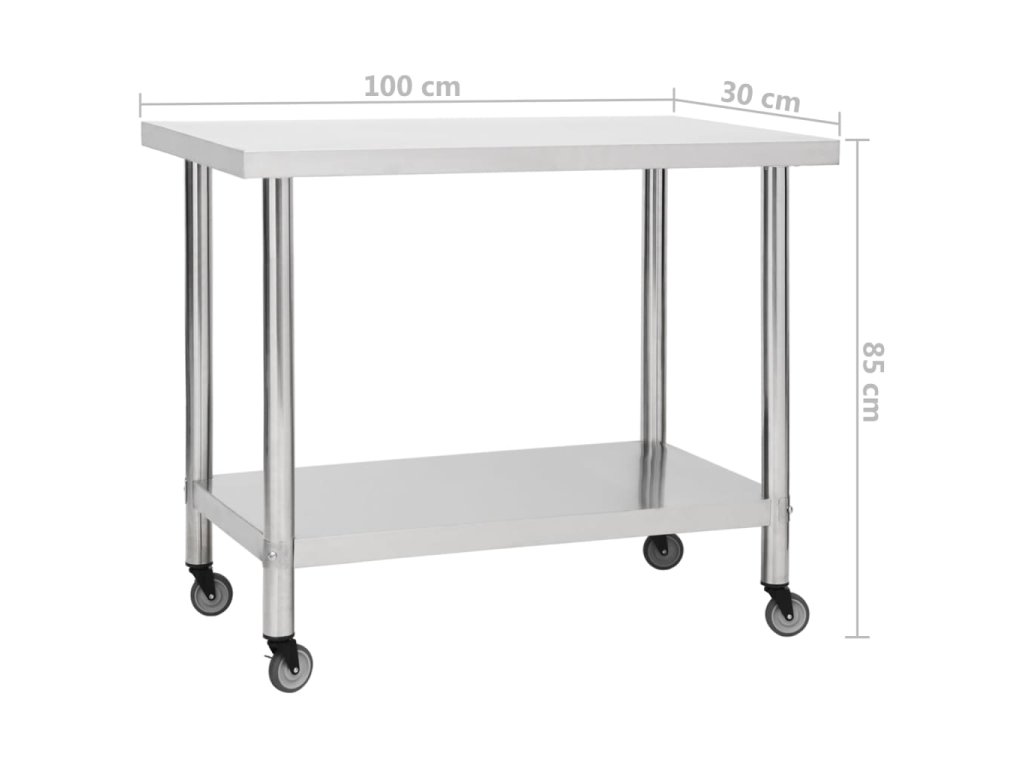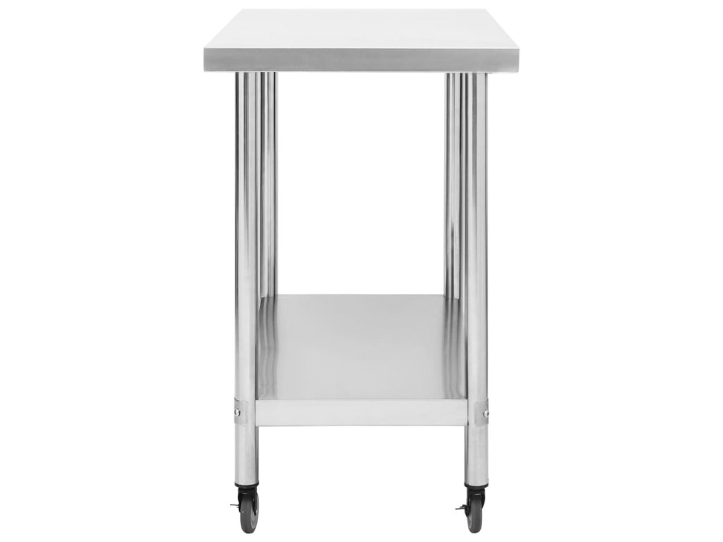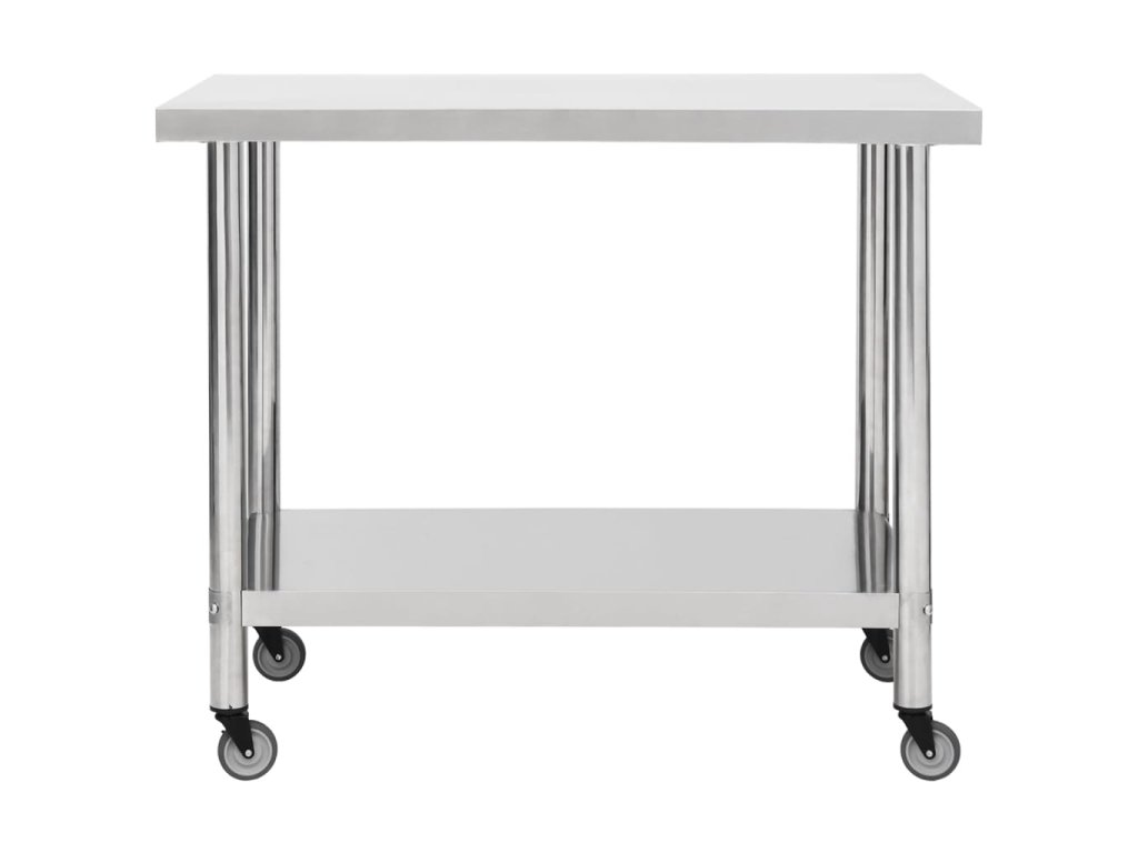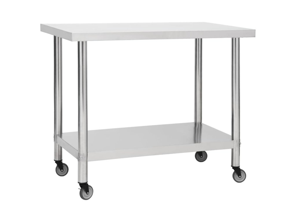 Tento gastro pracovný stôl je vyrobený z nehrdzavejúcej ocele, odolný na celoživotné používanie. Hladký povrch je odolný voči korózii a ľahko sa čistí. Spodná doska ponúka ďalší úložný priestor. Pracovný stôl má k dispozícii 4 pohyblivé kolesá, takže ho môžete voľne premiestňovať. Navyše 2 kolieska majú brzdy, ktoré udržia stôl na mieste.