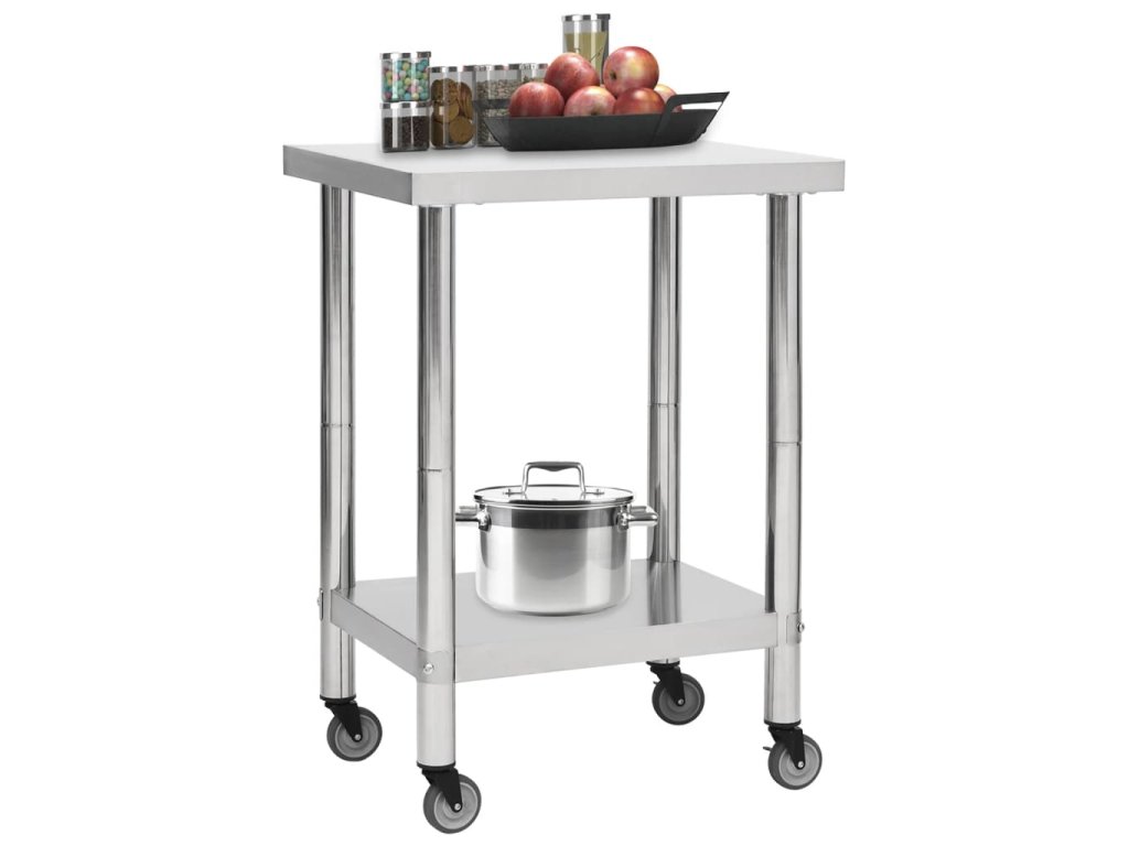 Tento gastro pracovný stôl je vyrobený z nehrdzavejúcej ocele, odolný na celoživotné používanie. Hladký povrch je odolný voči korózii a ľahko sa čistí. Spodná doska ponúka ďalší úložný priestor. Pracovný stôl má k dispozícii 4 pohyblivé kolesá, takže ho môžete voľne premiestňovať. Navyše 2 kolieska majú brzdy, ktoré udržia stôl na mieste.