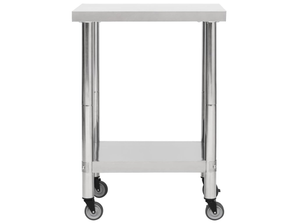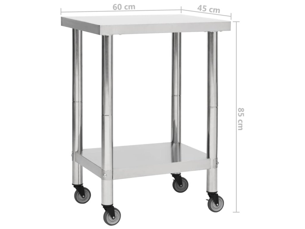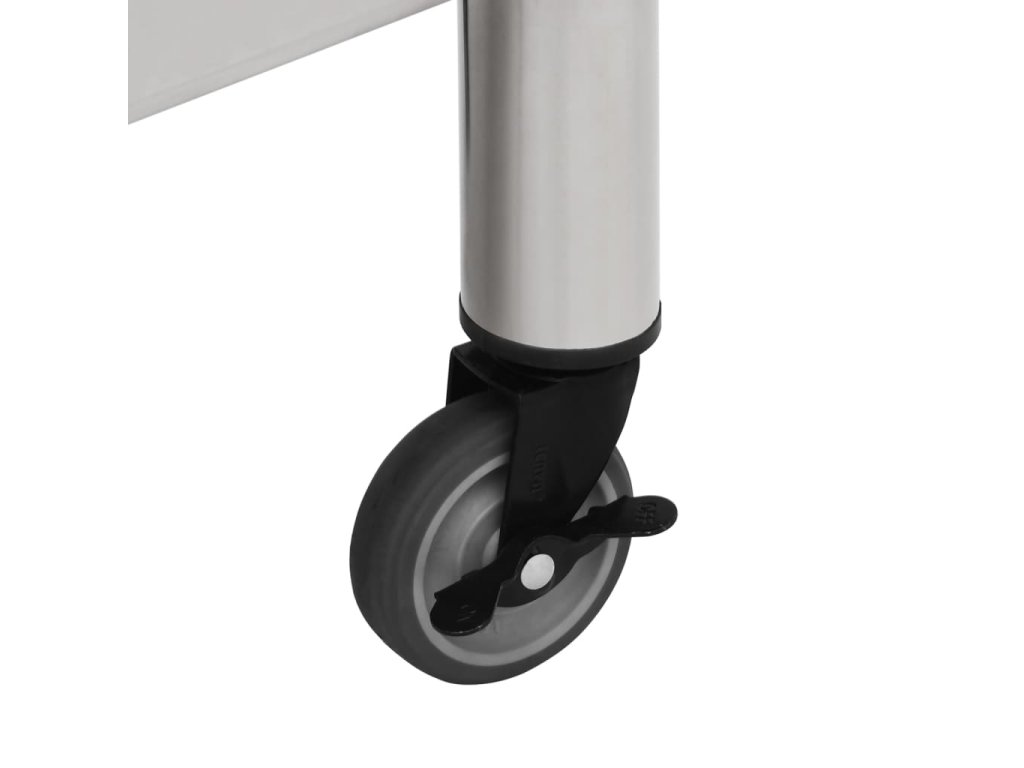 Tento gastro pracovný stôl je vyrobený z nehrdzavejúcej ocele, odolný na celoživotné používanie. Hladký povrch je odolný voči korózii a ľahko sa čistí. Spodná doska ponúka ďalší úložný priestor. Pracovný stôl má k dispozícii 4 pohyblivé kolesá, takže ho môžete voľne premiestňovať. Navyše 2 kolieska majú brzdy, ktoré udržia stôl na mieste.