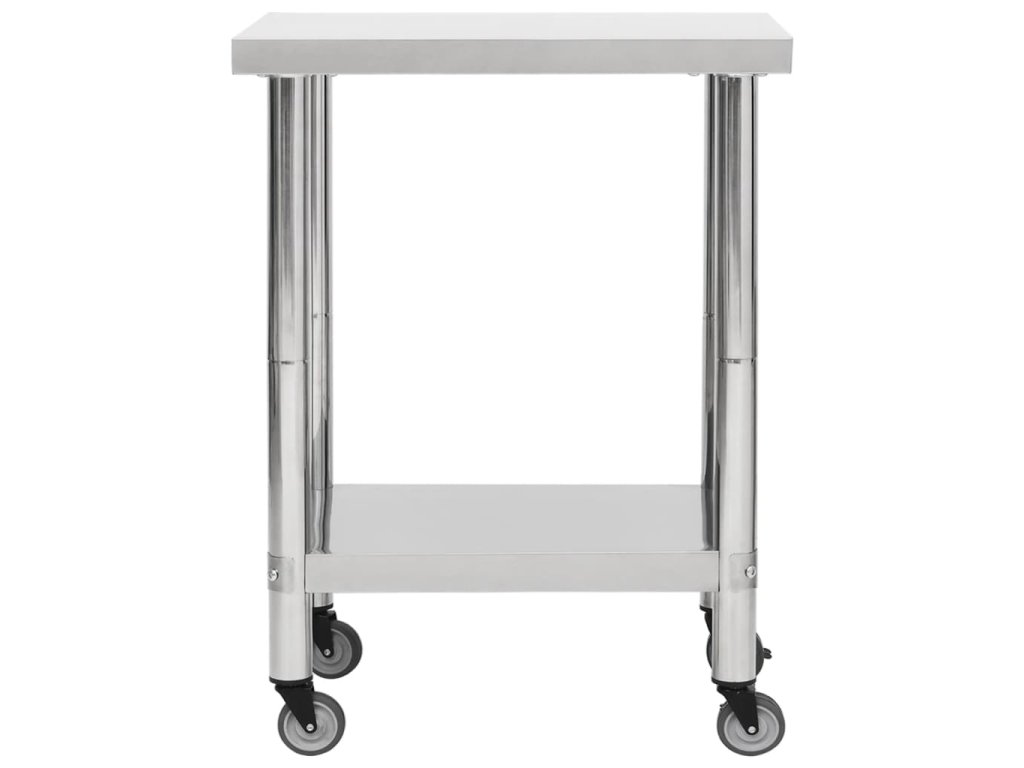 Tento gastro pracovný stôl je vyrobený z nehrdzavejúcej ocele, odolný na celoživotné používanie. Hladký povrch je odolný voči korózii a ľahko sa čistí. Spodná doska ponúka ďalší úložný priestor. Pracovný stôl má k dispozícii 4 pohyblivé kolesá, takže ho môžete voľne premiestňovať. Navyše 2 kolieska majú brzdy, ktoré udržia stôl na mieste.