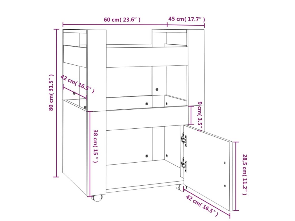 - Trvácny materiál: Spracované drevo je mimoriadne kvalitné s hladkým povrchom a vyznačuje sa pevnosťou, stabilitou a odolnosťou proti vlhkosti. Vozík je vyrobený zo spracovaného dreva a ľahko sa čistí.