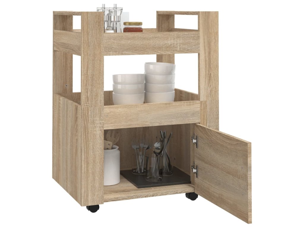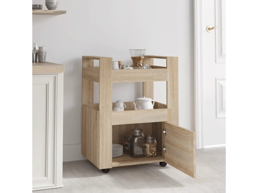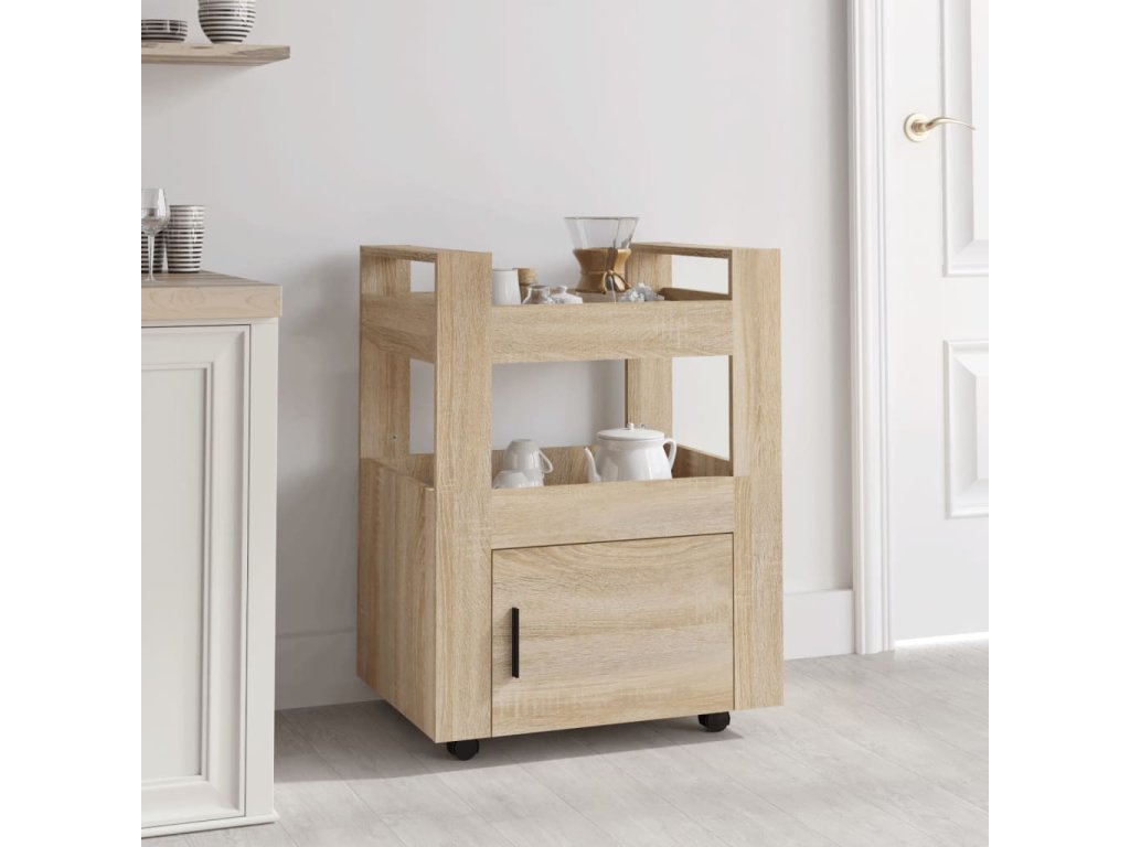 - Trvácny materiál: Spracované drevo je mimoriadne kvalitné s hladkým povrchom a vyznačuje sa pevnosťou, stabilitou a odolnosťou proti vlhkosti. Vozík je vyrobený zo spracovaného dreva a ľahko sa čistí.