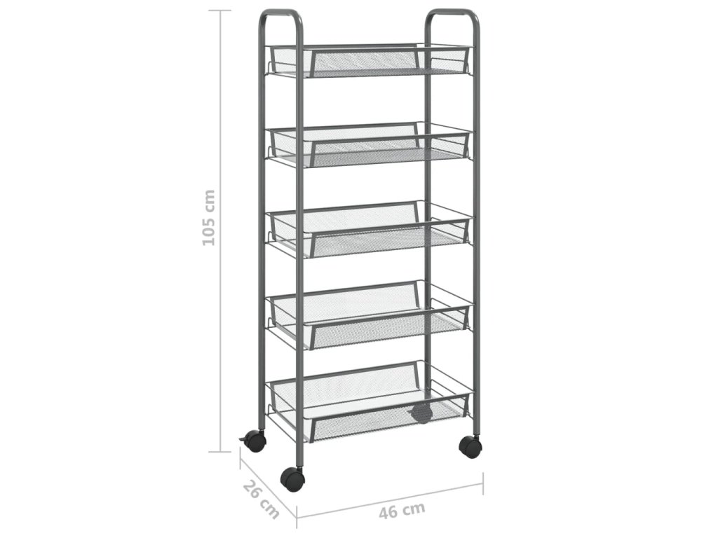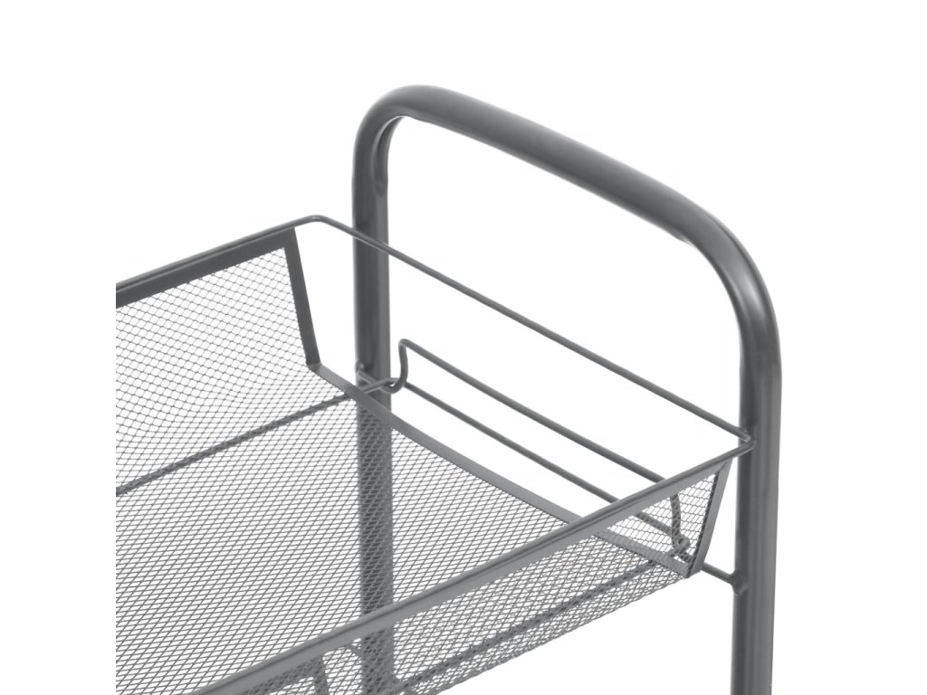 Tento vozík pre domácnosť má železnú konštrukciu, vďaka ktorej je robustný a odolný. Priestorovo úsporný vozík má 4 kolieska, z čoho sú 2 kolieska vybavené brzdami pre jednoduché presúvanie a zastavovanie. Sieťované košíky sú pevné a odnímateľné. Poskytujú ďalší úložný priestor a umožňujú plné využitie priestoru. Vozík je ideálny na odkladanie hračiek, kľúčov, potravín a podobne.