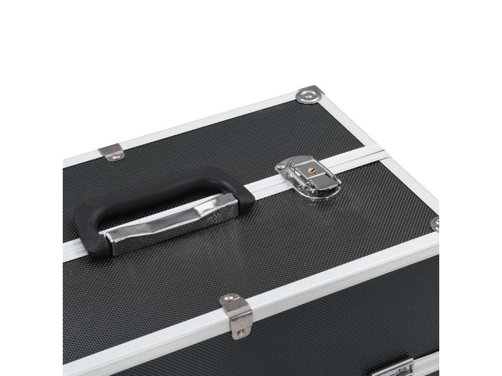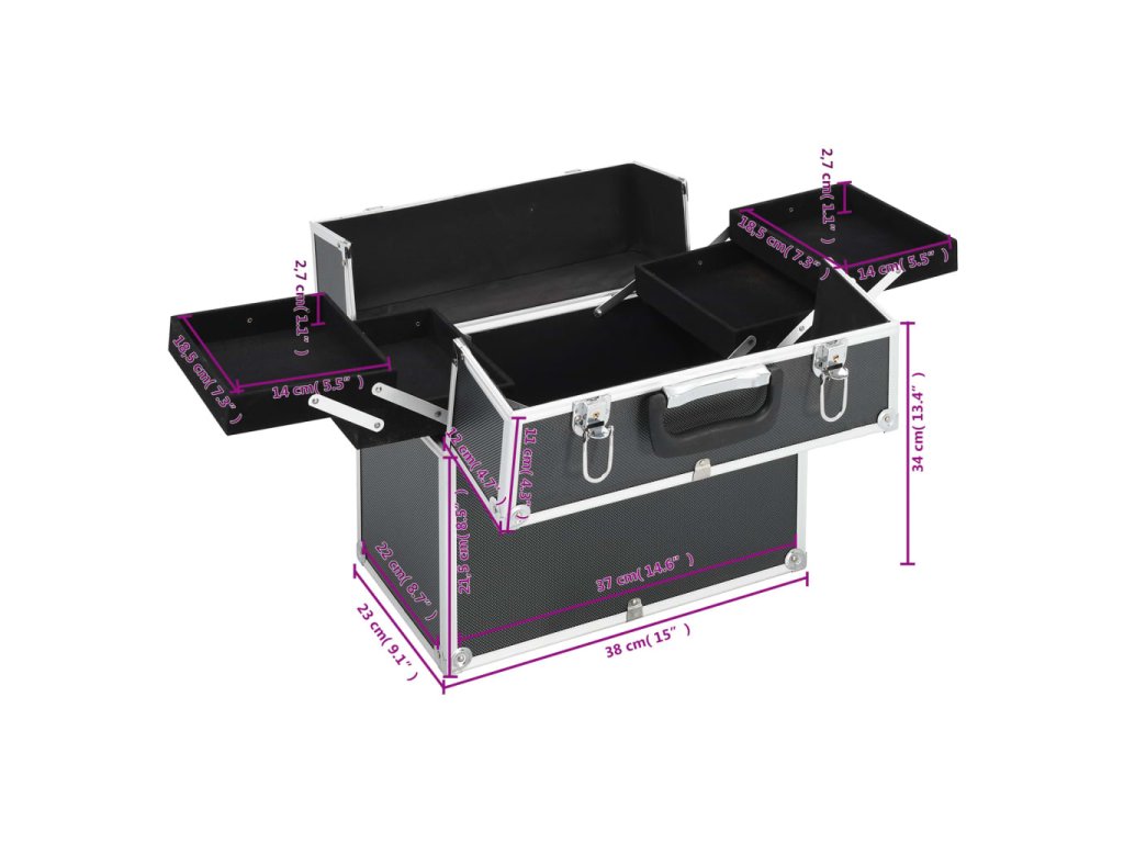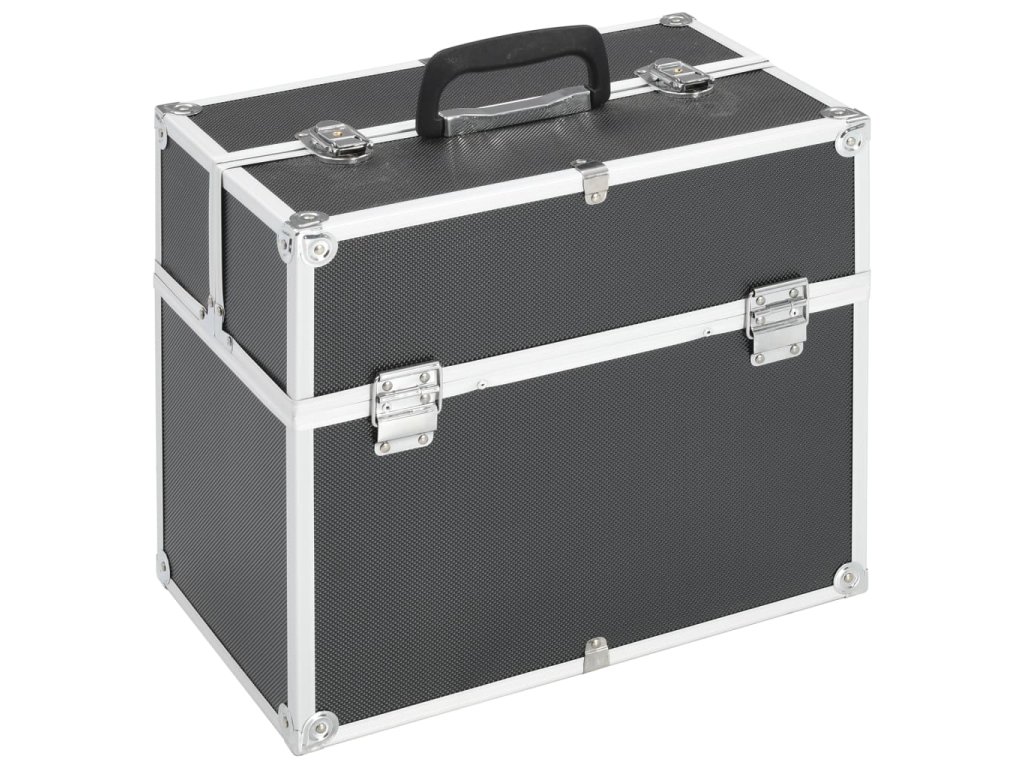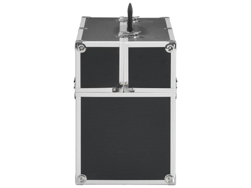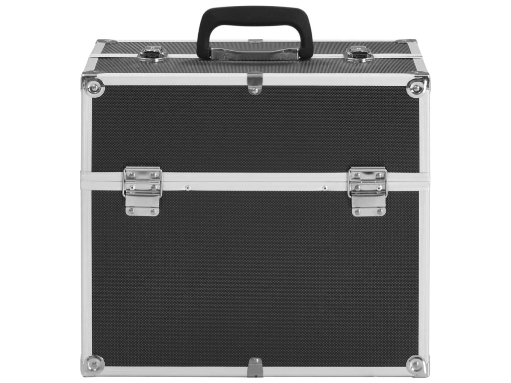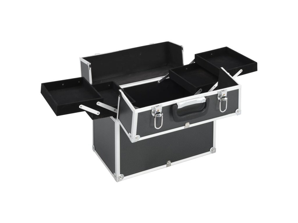Tento kufrík na make-up vyrobený z dreva, ABS fólie a z hliníka vám umožní prakticky uložiť vašu kozmetiku a udržiavať ju v perfektnom stave. Tento kozmetický kufrík obsahuje rozkladací vrch a zásuvky, ktoré poskytujú dostatok úložného priestoru pre vaše kozmetické a skrášľovacie pomôcky. Má takisto rukoväť na prenášanie, vďaka ktorej si môžete vziať kufrík kamkoľvek so sebou.