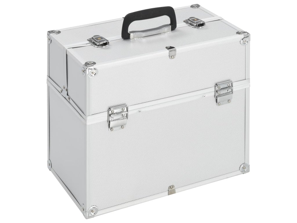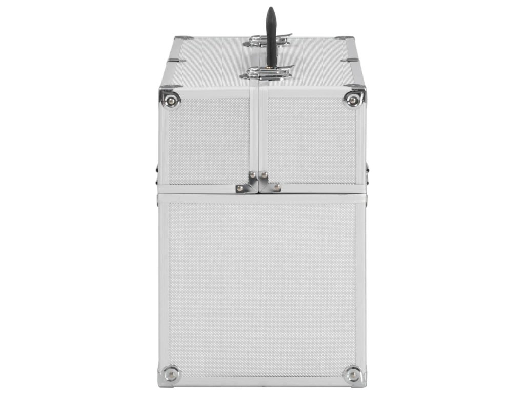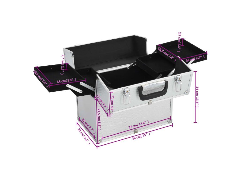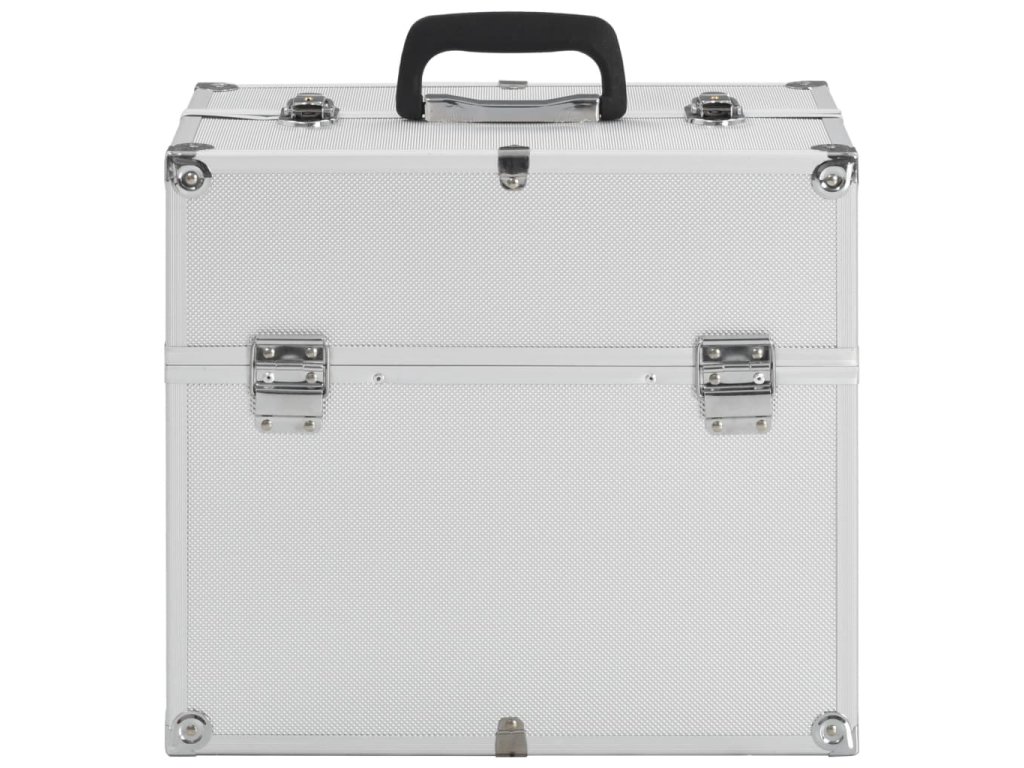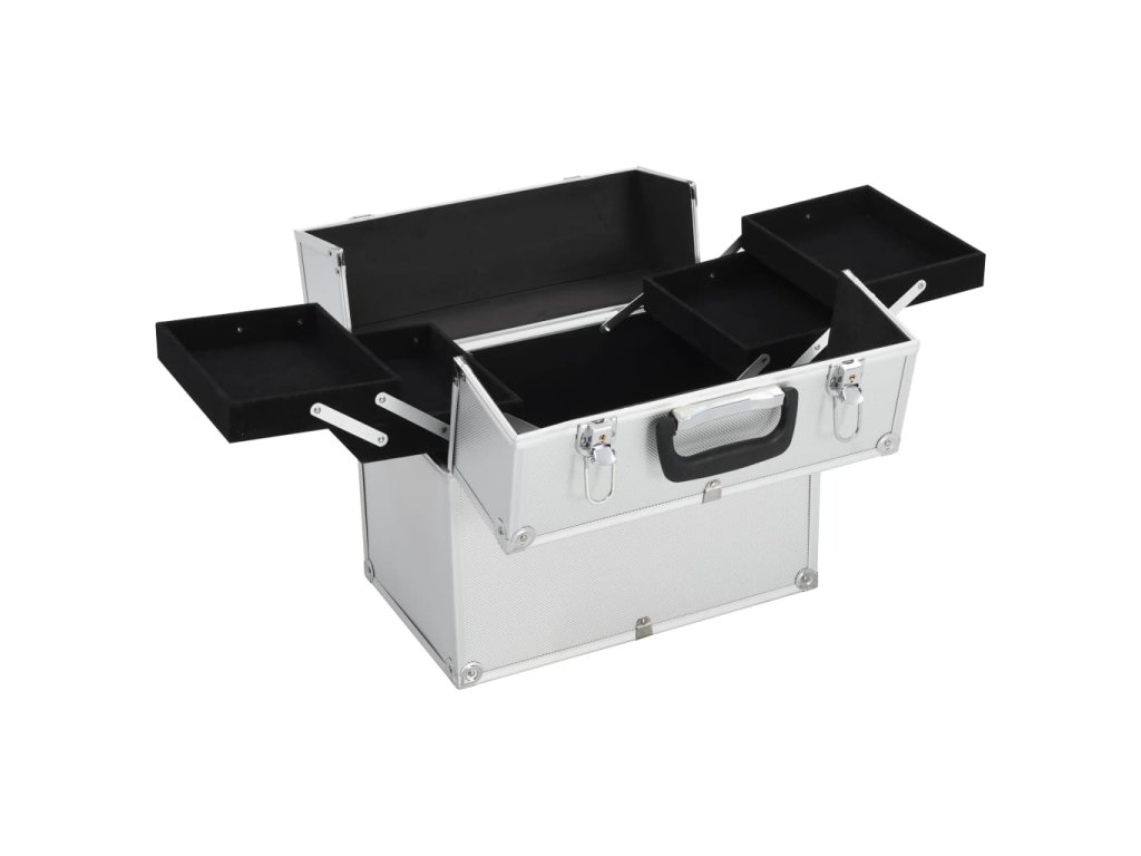 Tento kufrík na make-up vyrobený z dreva, ABS fólie a z hliníka vám umožní prakticky uložiť vašu kozmetiku a udržiavať ju v perfektnom stave. Tento kozmetický kufrík obsahuje rozkladací vrch a zásuvky, ktoré poskytujú dostatok úložného priestoru pre vaše kozmetické a skrášľovacie pomôcky. Má takisto rukoväť na prenášanie, vďaka ktorej si môžete vziať kufrík kamkoľvek so sebou.