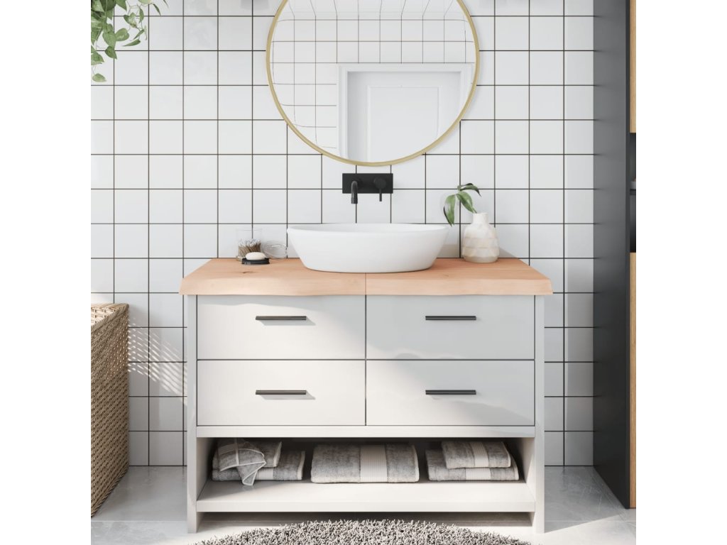 - Neošetrený povrch: Keďže kúpeľňová doska je vyrobená z masívneho dubového dreva bez povrchovej úpravy, môžete si zachovať jej prirodzenú farbu, ale môžete ju aj natrieť alebo nalakovať podľa svojich preferencií.
