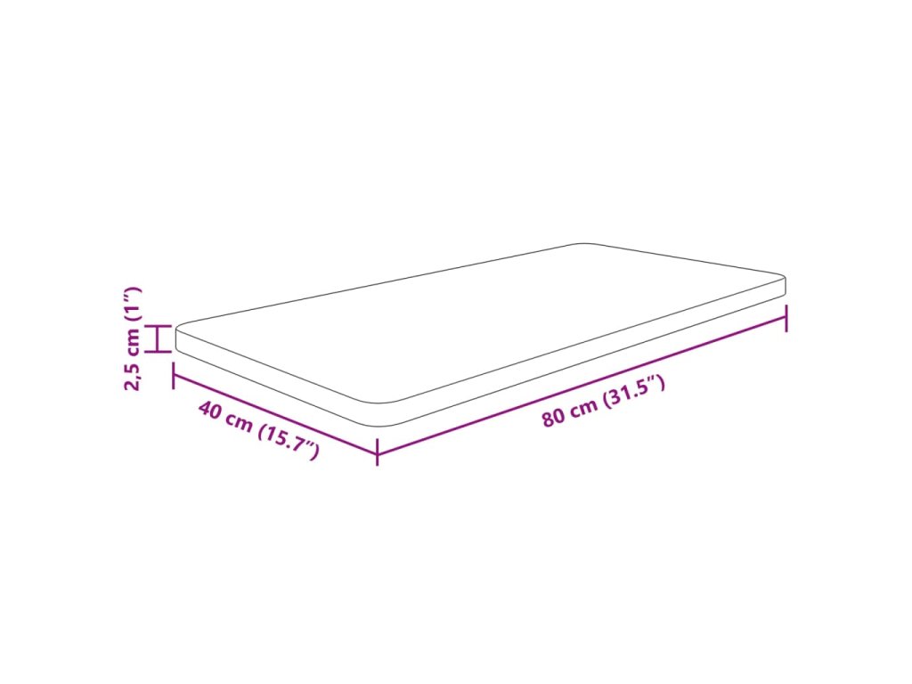 - Rozmery: 80 x 40 x 2,5 cm (D x Š x H)