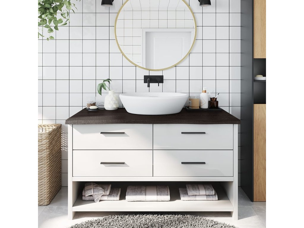 - Ošetrený povrch: kúpeľňová doska bola nalakovaná tmavou farbou, takže je pripravená na použitie, pretože nie je potrebná ďalšia povrchová úprava.