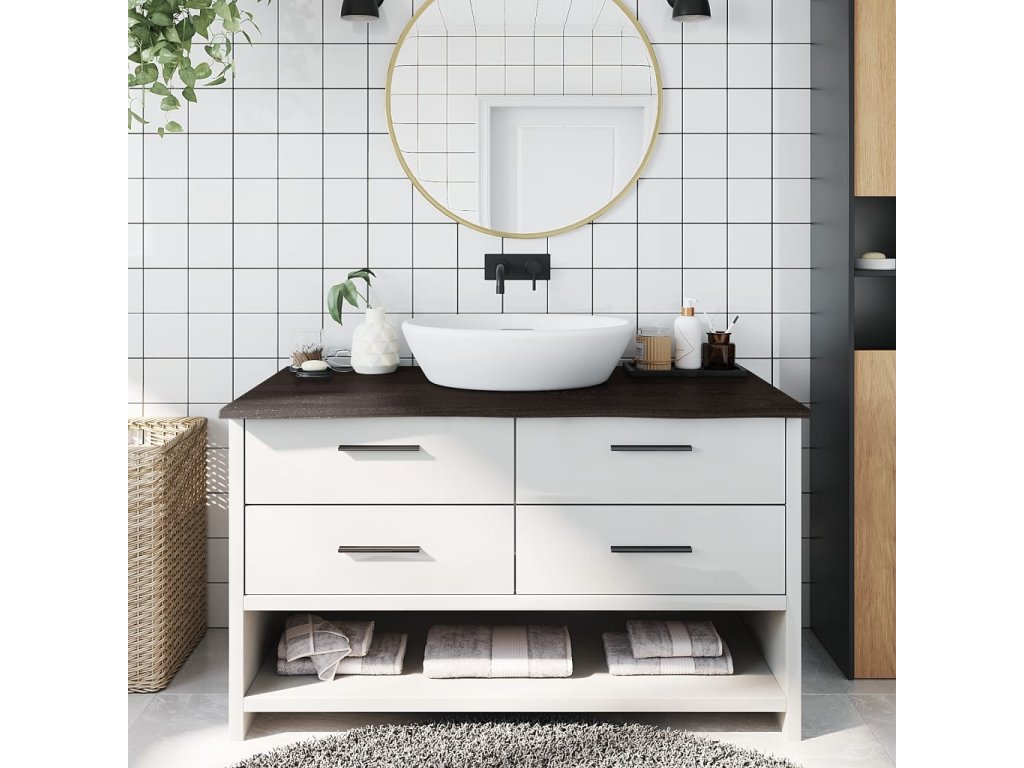 - Ošetrený povrch: kúpeľňová doska bola nalakovaná tmavou farbou, takže je pripravená na použitie, pretože nie je potrebná ďalšia povrchová úprava.