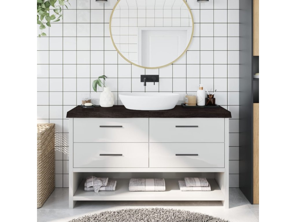- Ošetrený povrch: kúpeľňová doska bola nalakovaná tmavou farbou, takže je pripravená na použitie, pretože nie je potrebná ďalšia povrchová úprava.