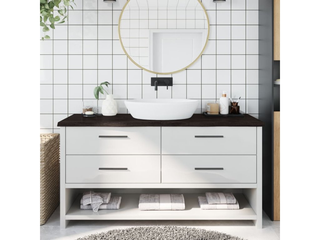 - Ošetrený povrch: kúpeľňová doska bola nalakovaná tmavou farbou, takže je pripravená na použitie, pretože nie je potrebná ďalšia povrchová úprava.