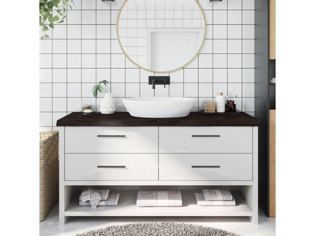 - Ošetrený povrch: kúpeľňová doska bola nalakovaná tmavou farbou, takže je pripravená na použitie, pretože nie je potrebná ďalšia povrchová úprava.