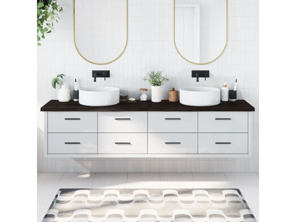 - Ošetrený povrch: kúpeľňová doska bola nalakovaná tmavou farbou, takže je pripravená na použitie, pretože nie je potrebná ďalšia povrchová úprava.