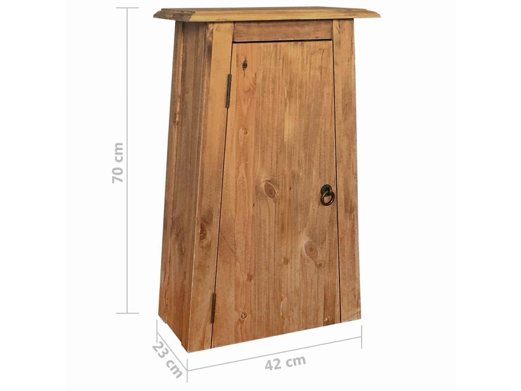 Robustná a trvácna skrinka je vyrobená z borovicového masívu. Vo vnútri skrinky sa nachádza 1 polička, ktorá poskytuje množstvo priestoru na prehľadné odkladanie toaletných potrieb, ktoré tak budete mať vždy poruke. Remeselné spracovanie umocňuje vintage štýl skrinky. Montáž je jednoduchá.
