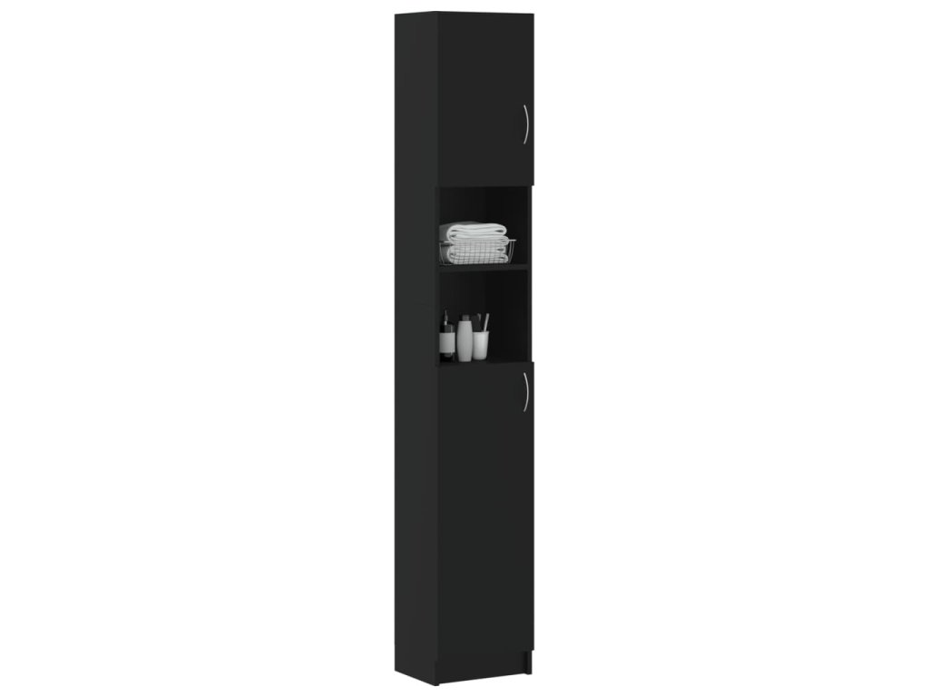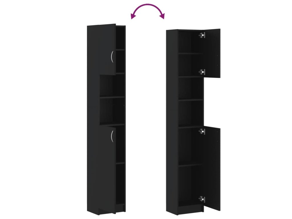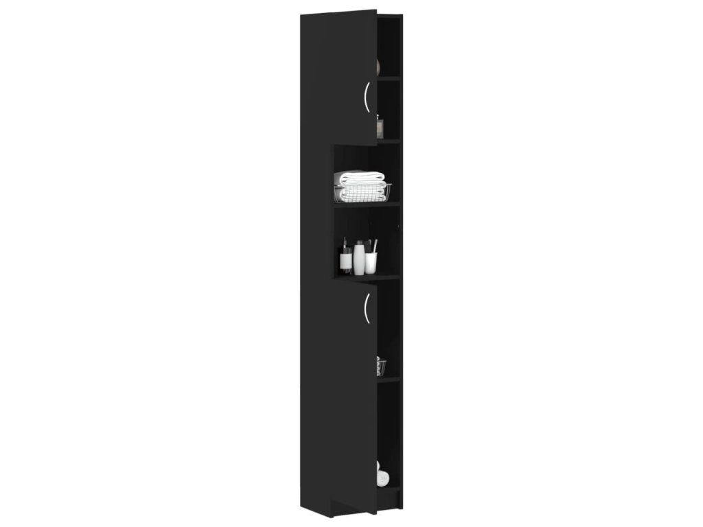 Naša elegantná kúpeľňová skrinka je vyrobená z kvalitného kompozitného dreva, vďaka čomu je robustná a stabilná. Vysoká skrinka má 4 police s dvierkami a 2 otvorené police, ktoré ponúkajú niekoľko možností skladovania a veľký úložný priestor na odkladanie rôznych predmetov v kúpeľni. Skrinka sa dá ľahko očistiť navlhčenou handričkou. Úložná skrinka sa okrem toho jednoducho montuje pomocou montážnych materiálov, ktoré sú súčasťou balenia.