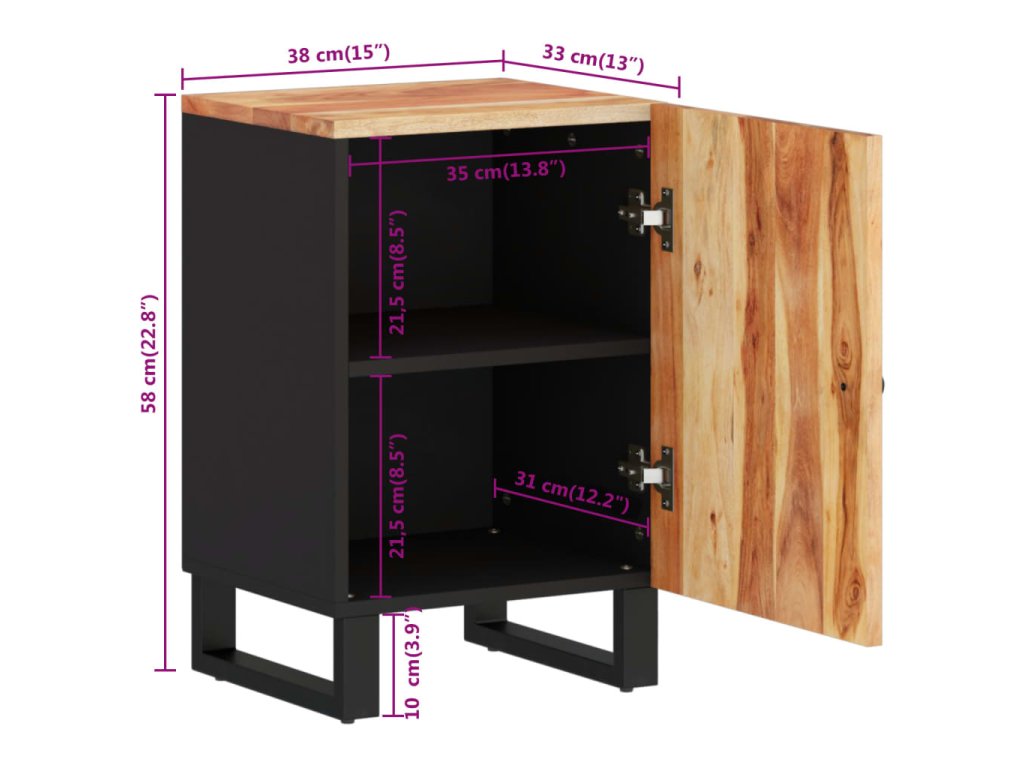 - Materiál: Akáciový masív s prírodnou povrchovou úpravou, spracované drevo, železo