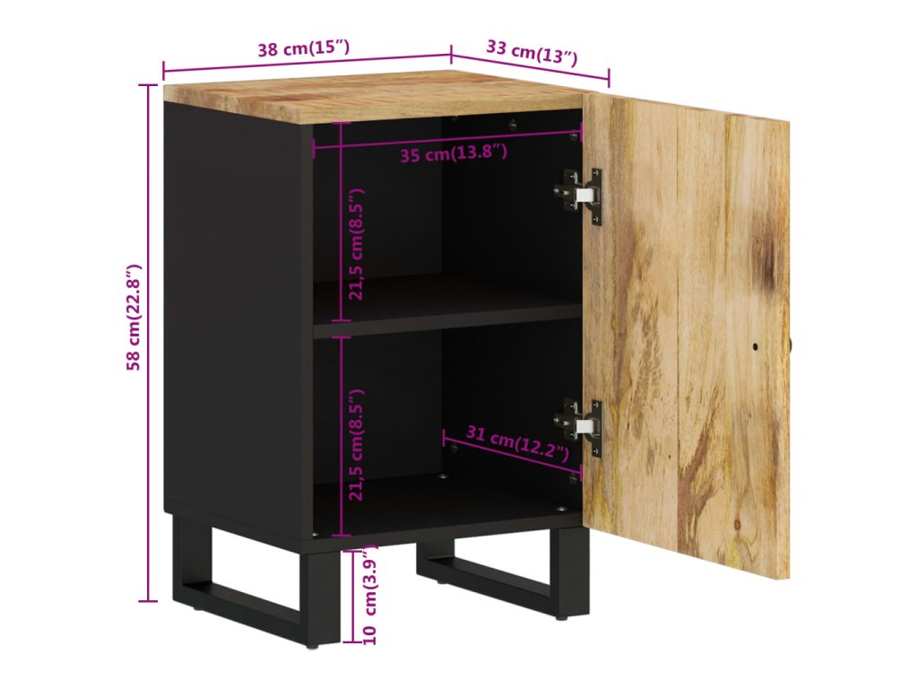- Materiál: Masívne mangovníkové drevo s prírodným povrchom, spracované drevo, železo
