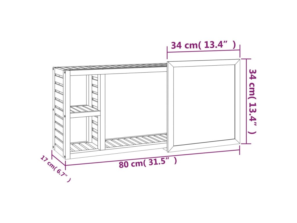 - Rozmery: 80 x 17 x 34 cm (D x Š x V)