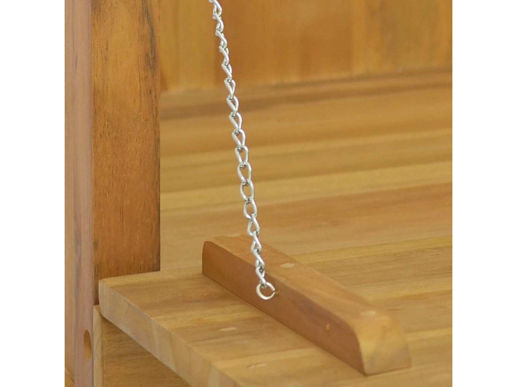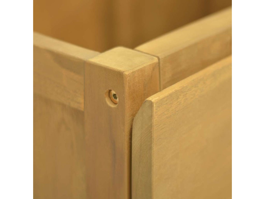 - Masívne tíkové drevo: Masívne tíkové drevo je krásny prírodný materiál. Bolo vyzreté, umelo vysušené a jemne obrúsené, čo mu dalo veľmi hladký vzhľad. Teakové drevo je známe svojou výnimočnou pevnosťou a odolnosťou voči poveternostným vplyvom.