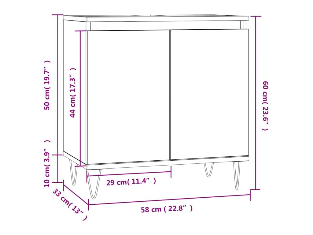 - Železné nožičky: Železné nožičky dodajú vášmu interiéru industriálny štýl a zároveň zabezpečia stabilitu kúpeľňovej skrinky.