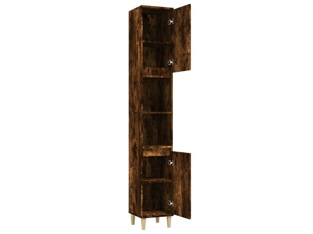 - Drevené nohy: Nohy z masívneho eukalyptu dodávajú skrinke prirodzený a príjemný vzhľad a zároveň zabezpečujú stabilitu.