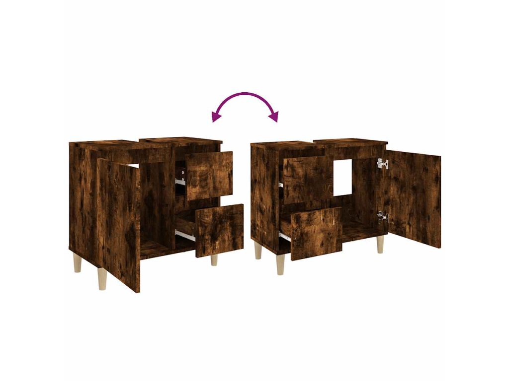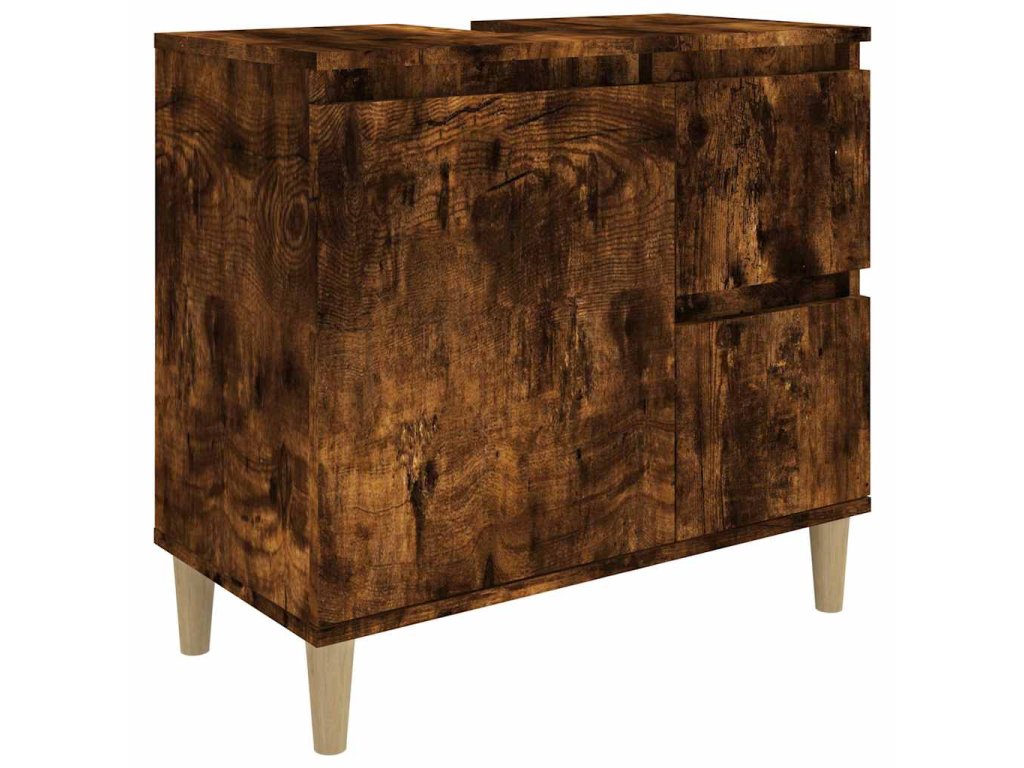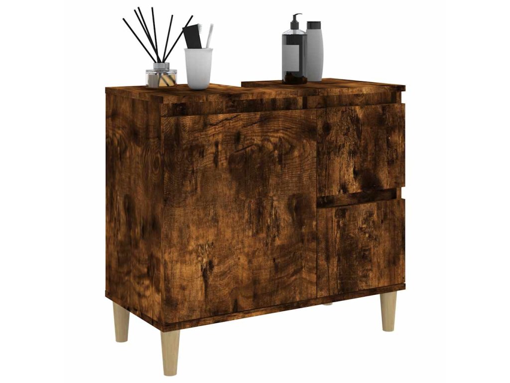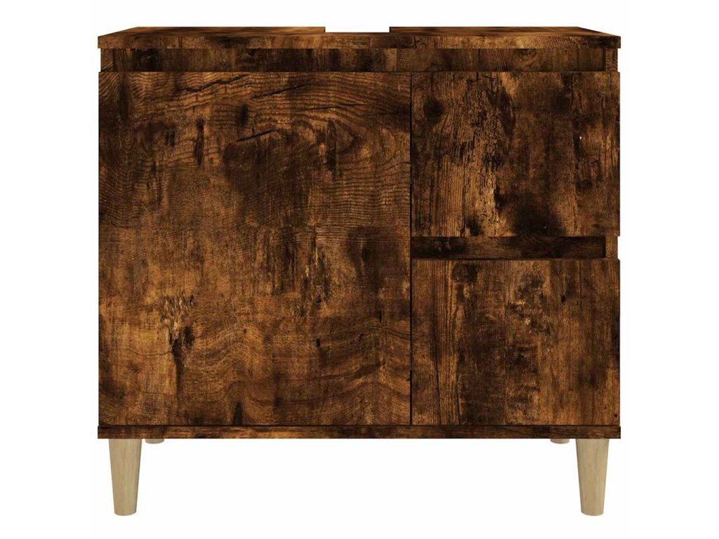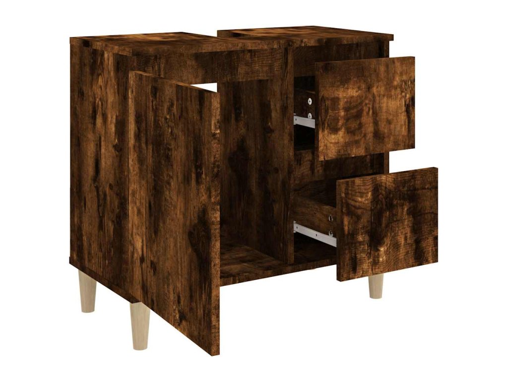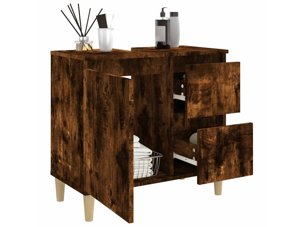 - Drevené nohy: Nohy z masívneho eukalyptu dodávajú skrinke prirodzený a príjemný vzhľad a zároveň zabezpečujú stabilitu.