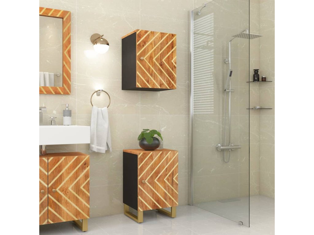 - Masívne mangové drevo: Masívne mangové drevo je pevné tropické tvrdé drevo, z ktorého sa vyrába robustný nábytok. Vďaka krásnej textúre dreva je každý kus nábytku výnimočný a trochu odlišný od ostatných. Kúpeľňová úložná skrinka je vyrobená z masívneho mangového dreva, je odolná a stabilná.